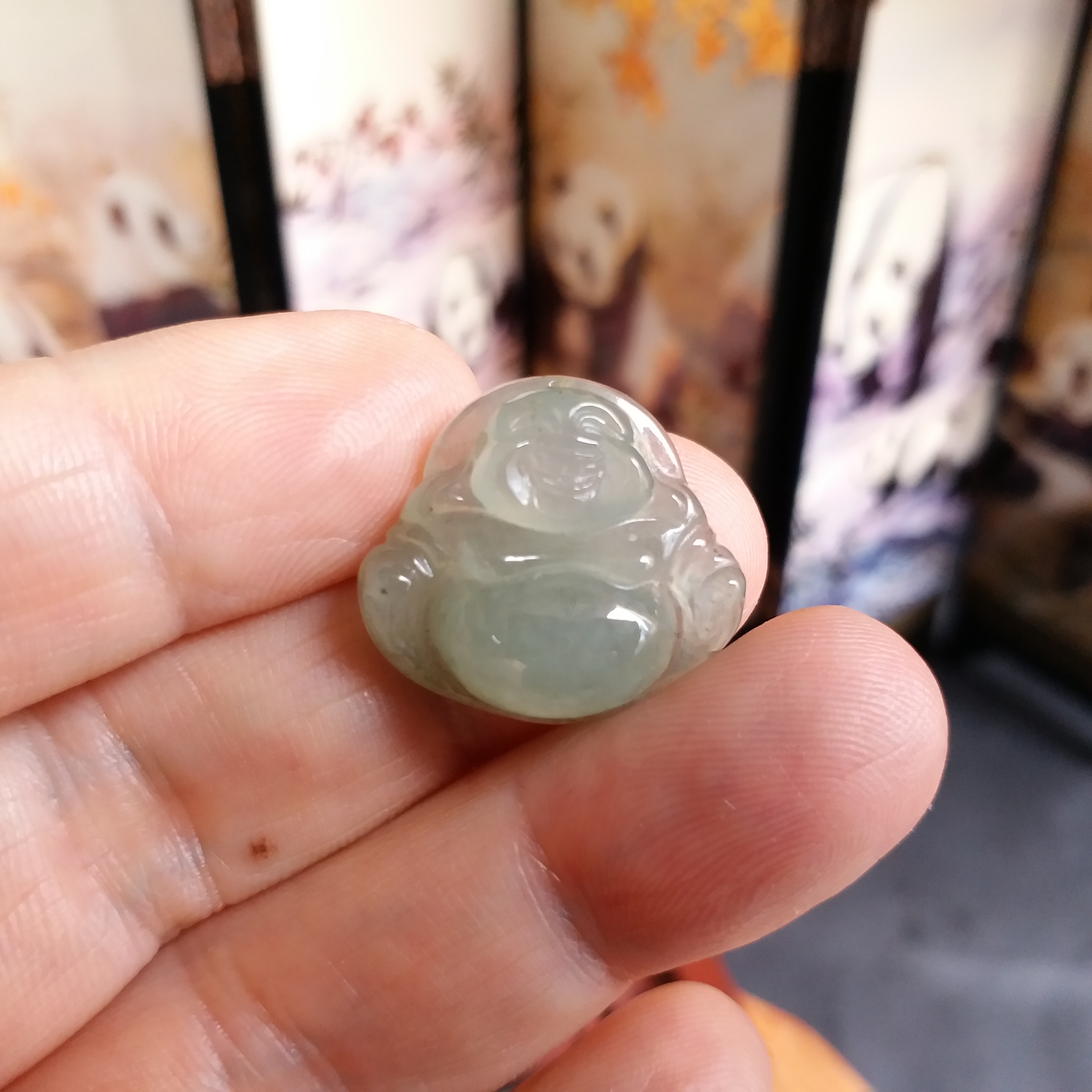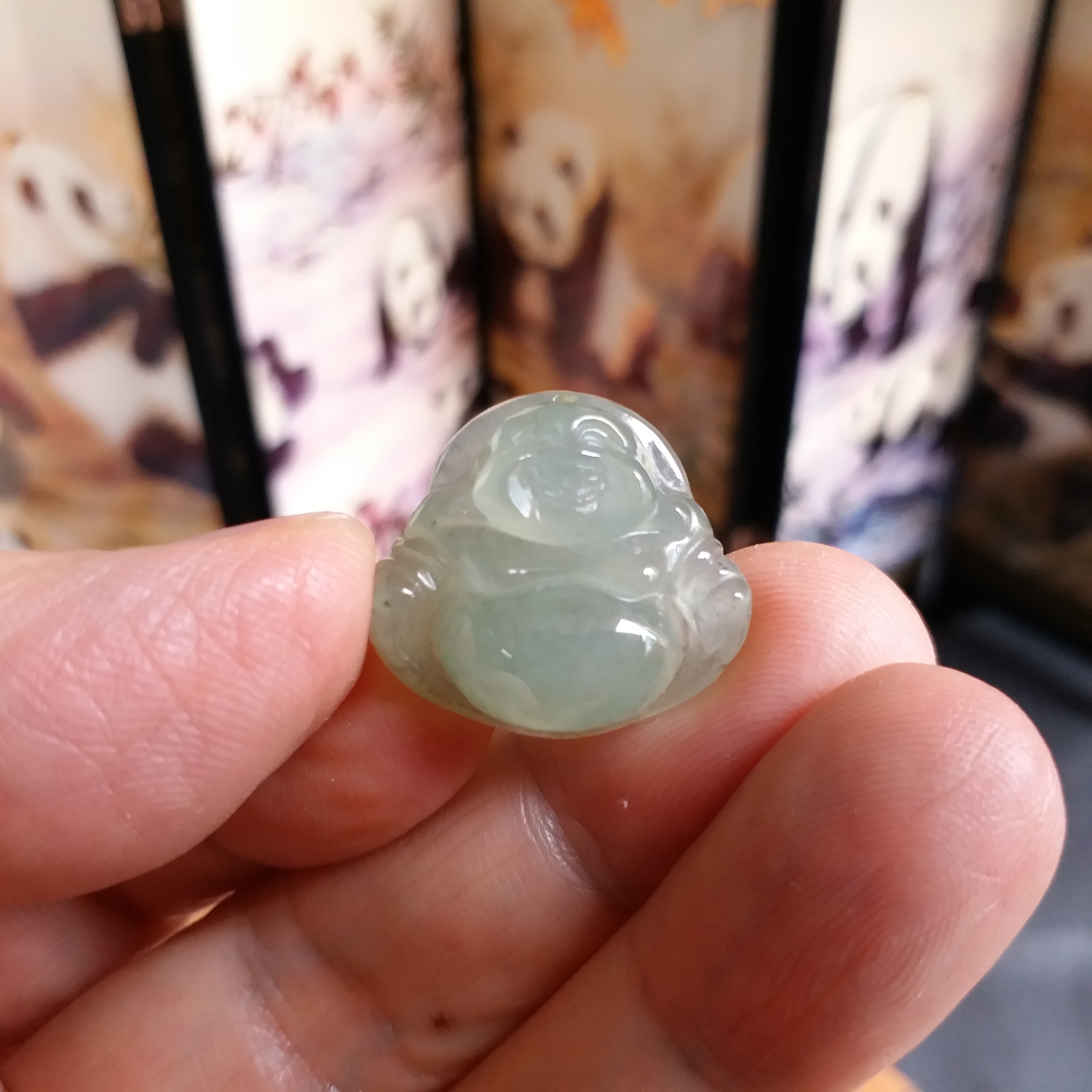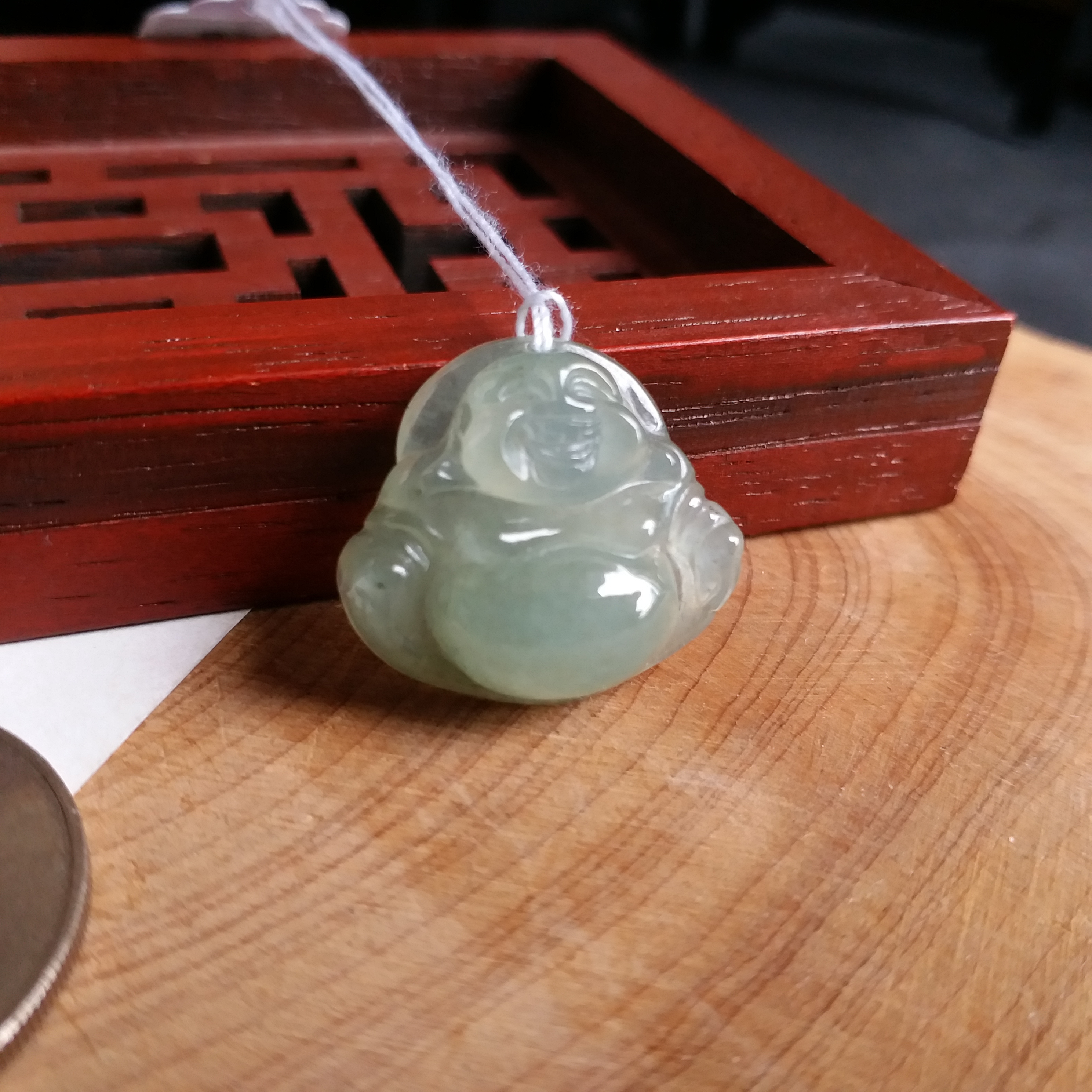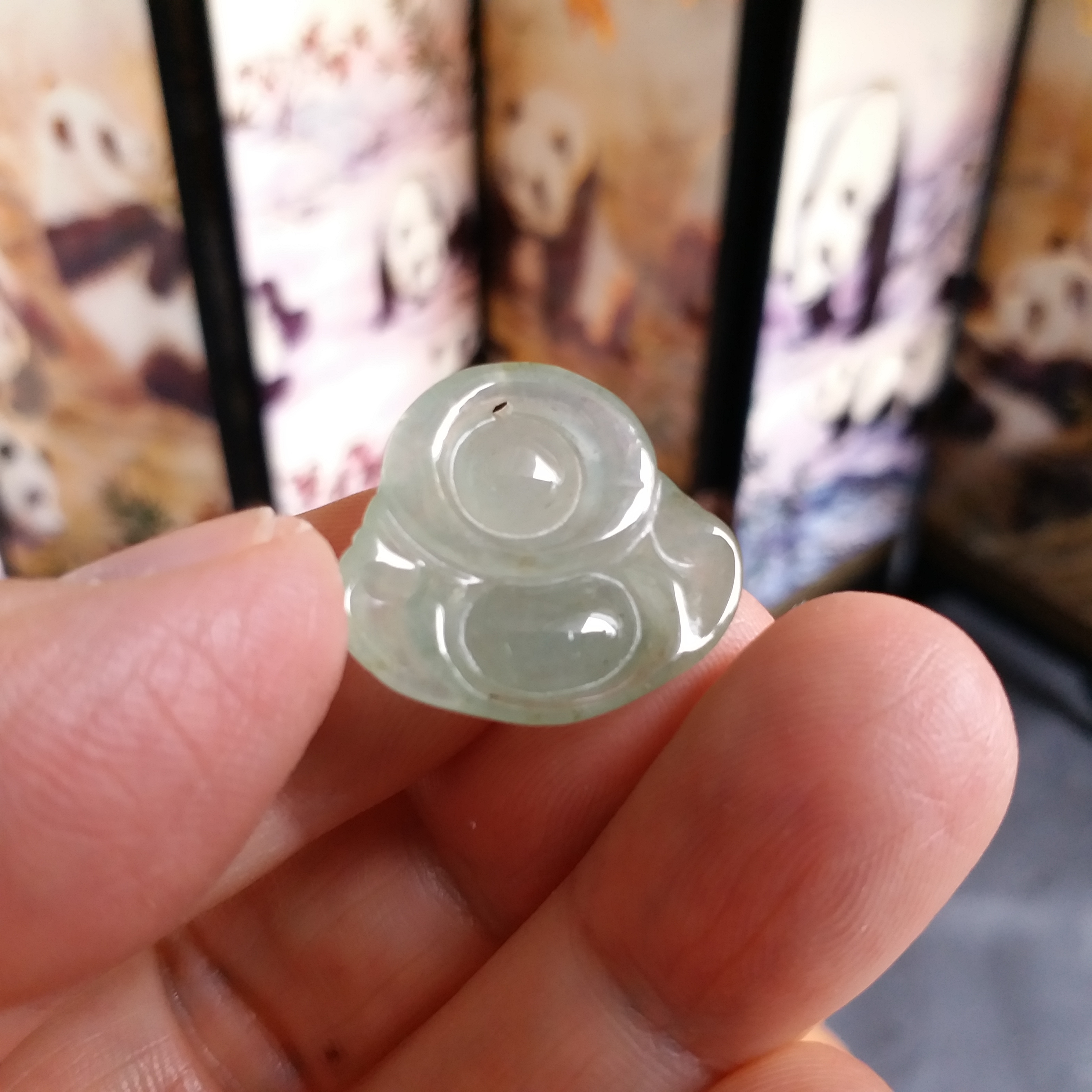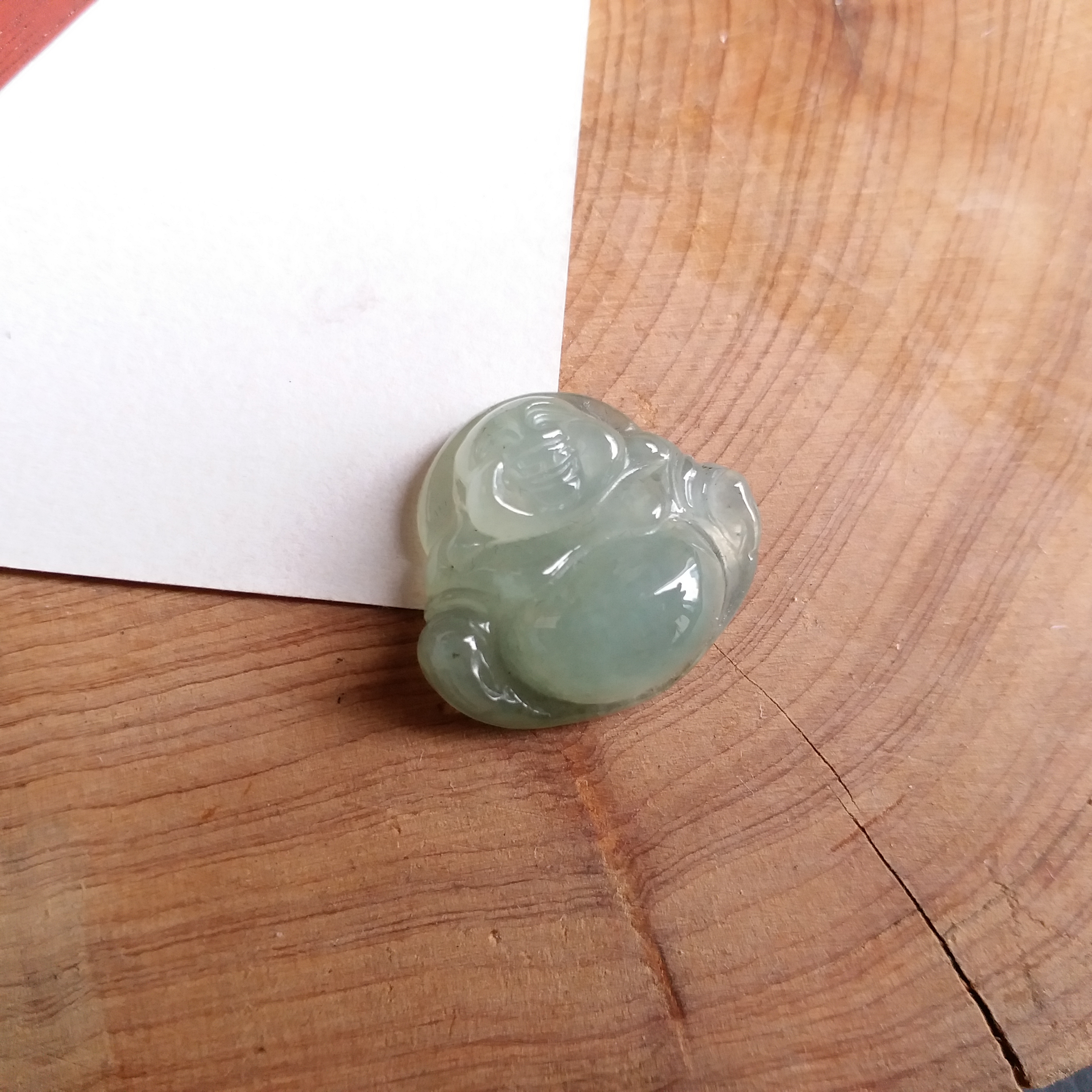• 冰淺綠小笑佛吊墜, 天然翡翠A玉, 緬甸玉, Jade, Jadeite