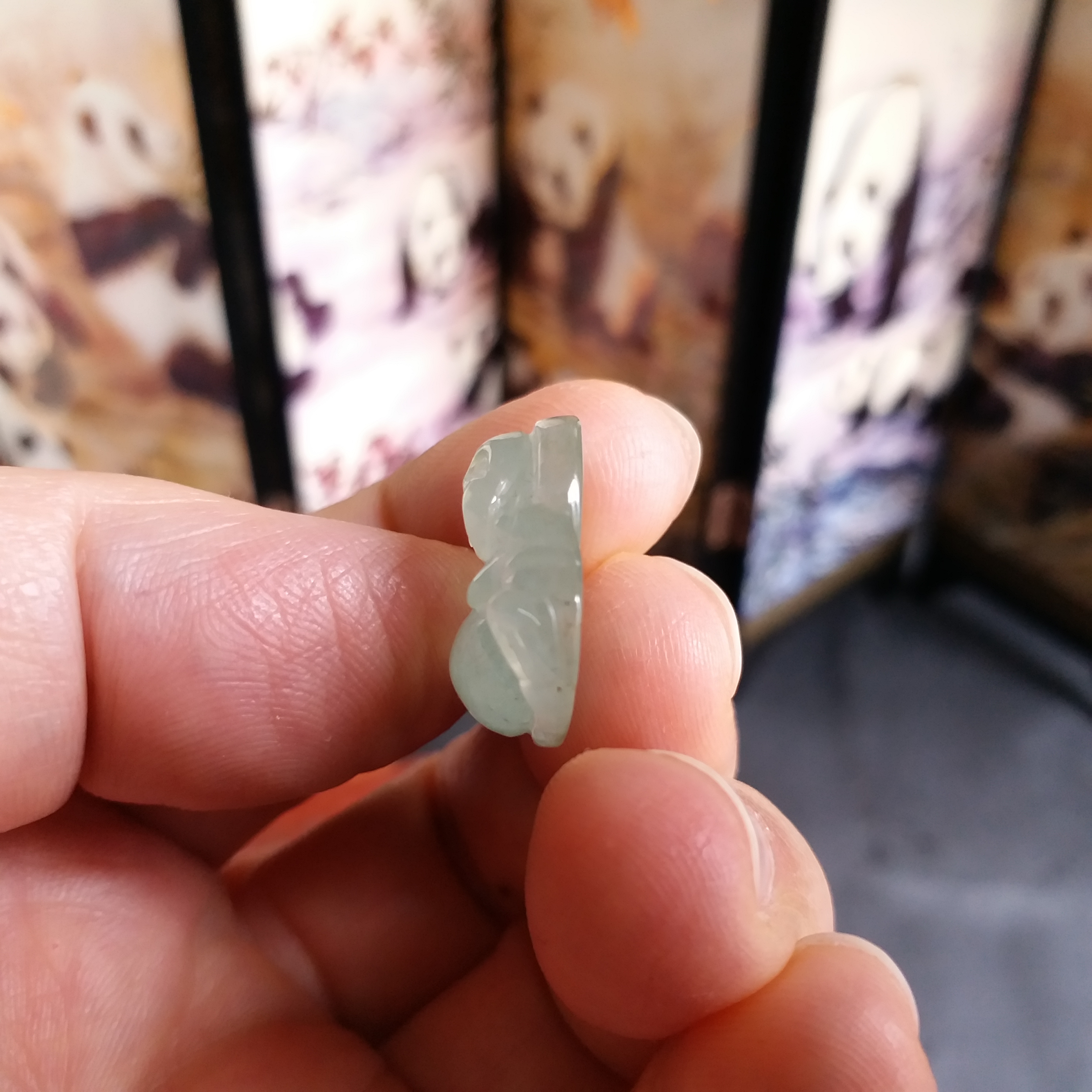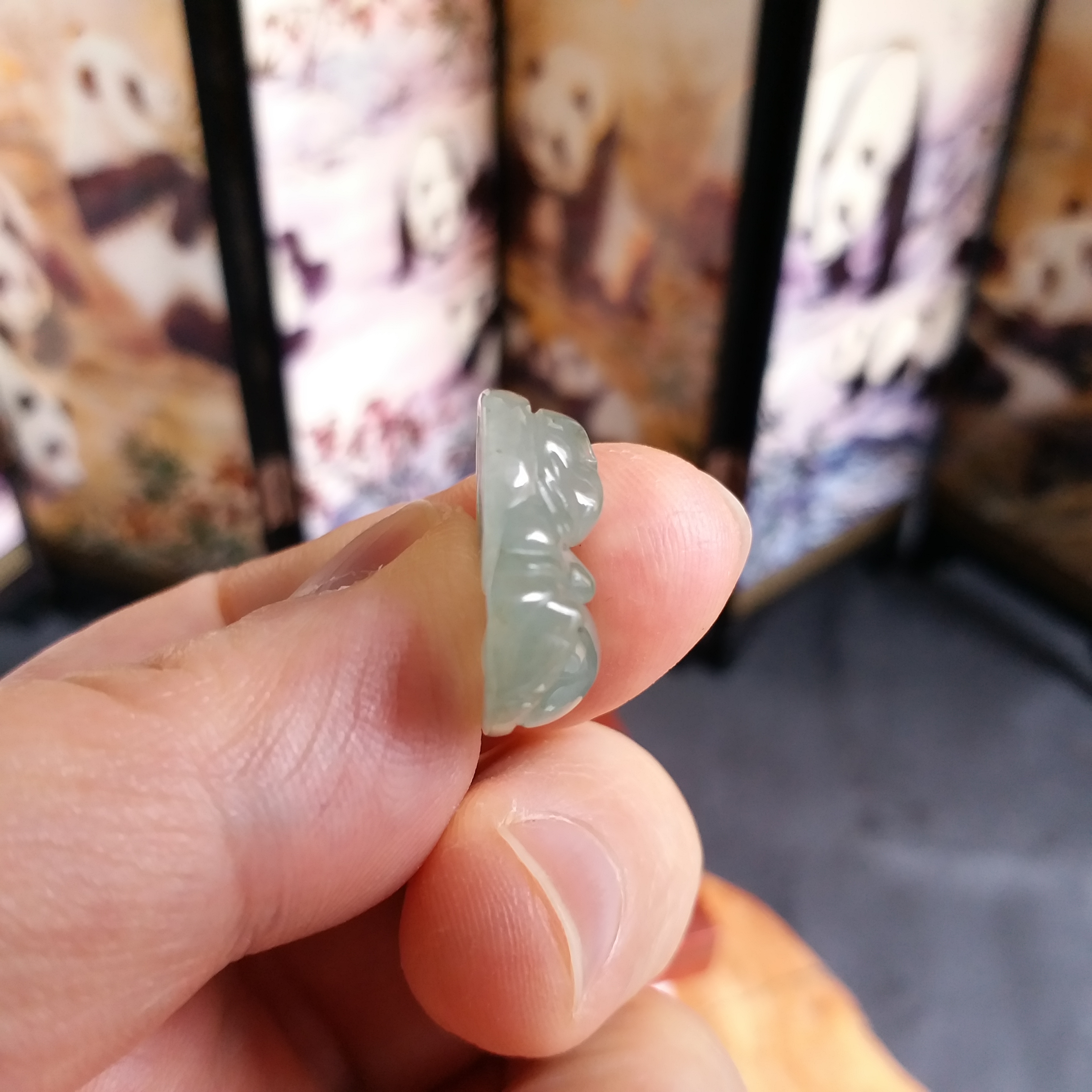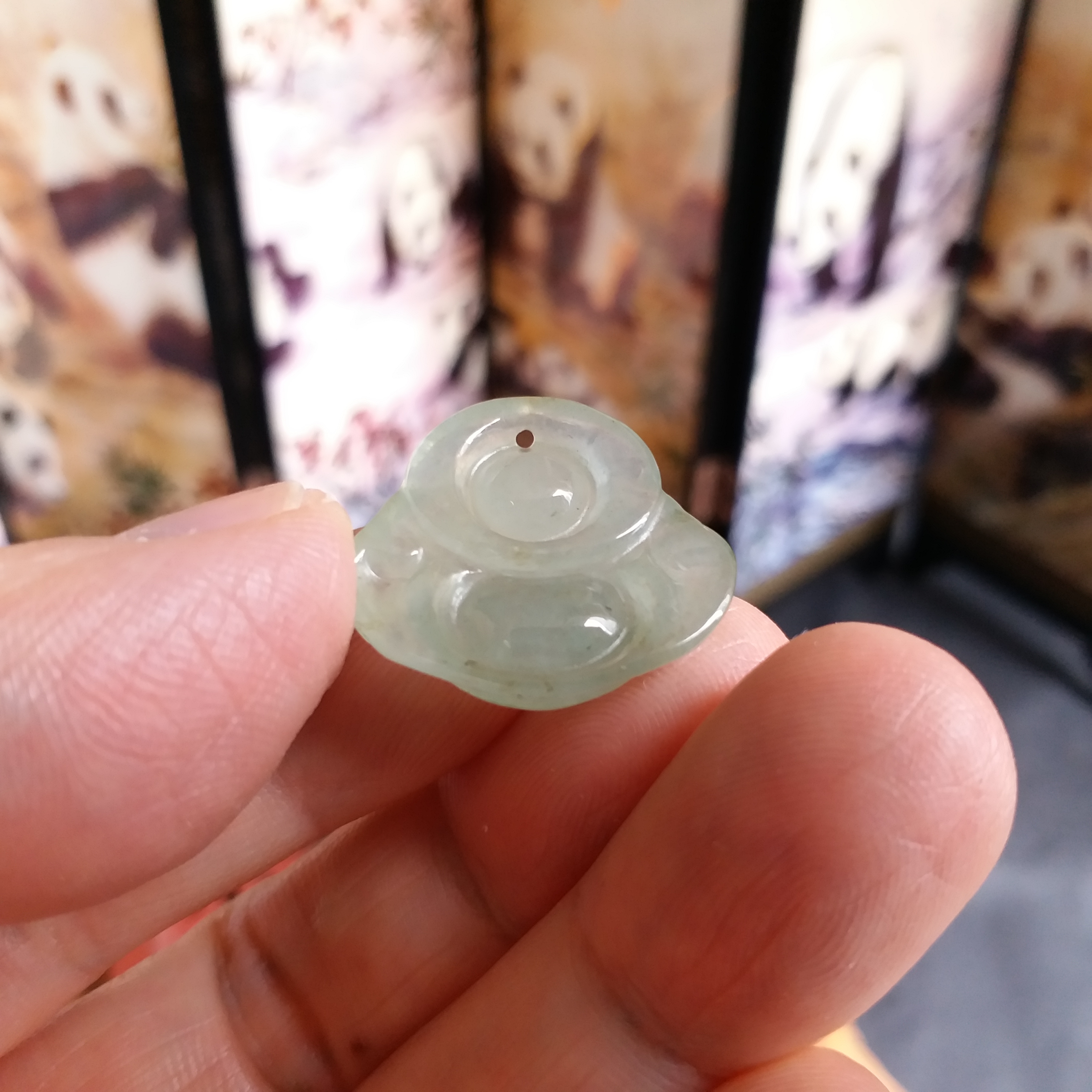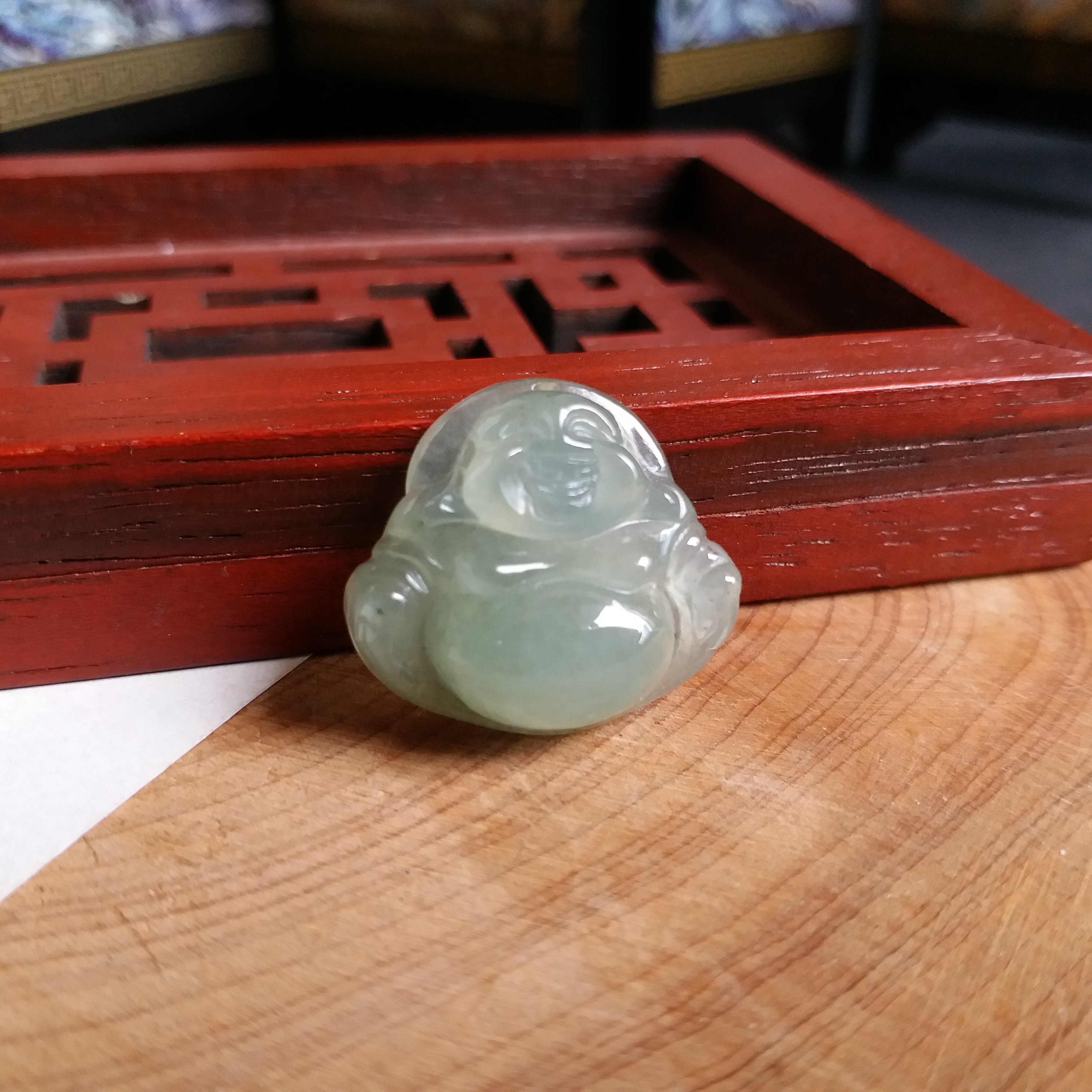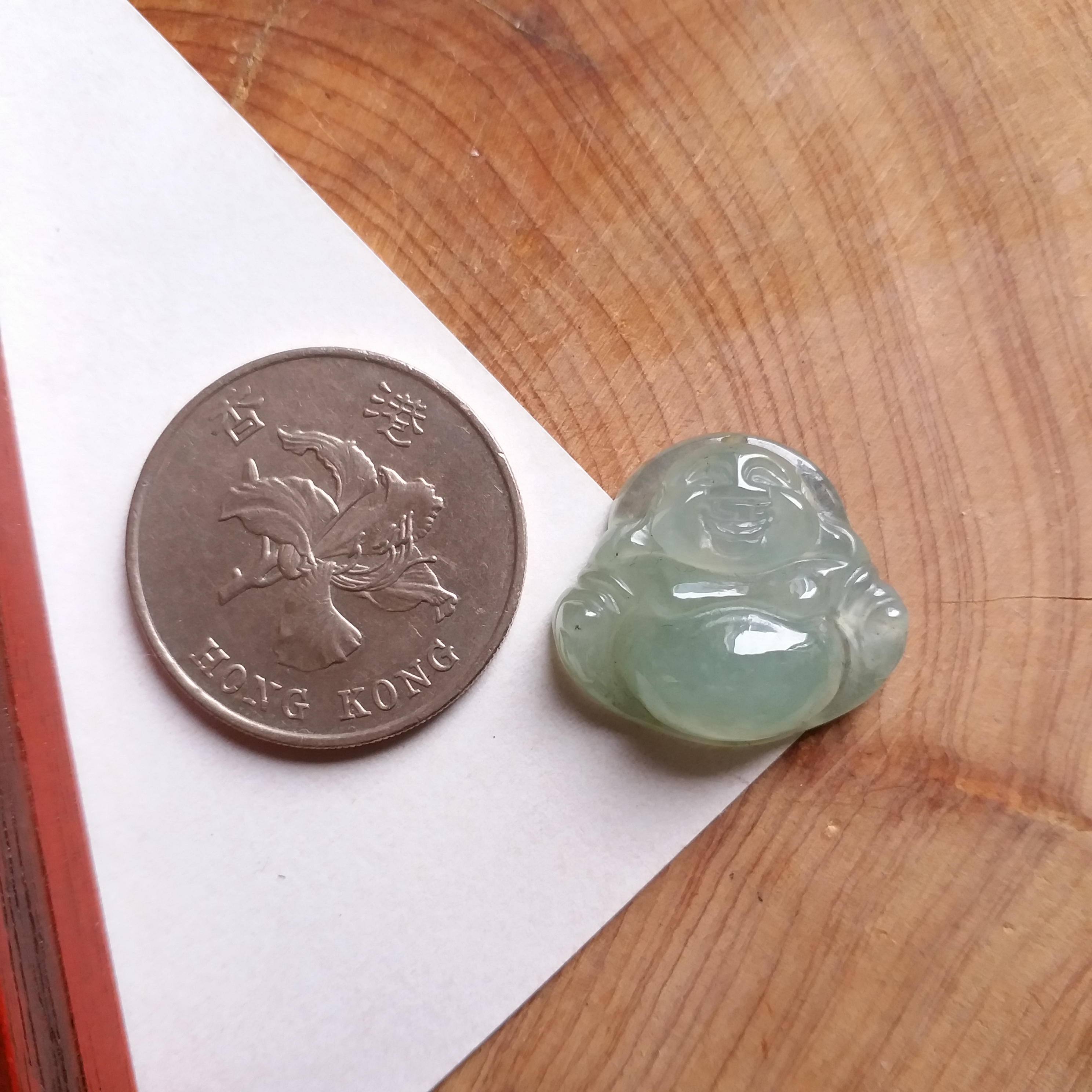 • 冰淺綠小笑佛吊墜, 天然翡翠A玉, 緬甸玉, Jade, Jadeite