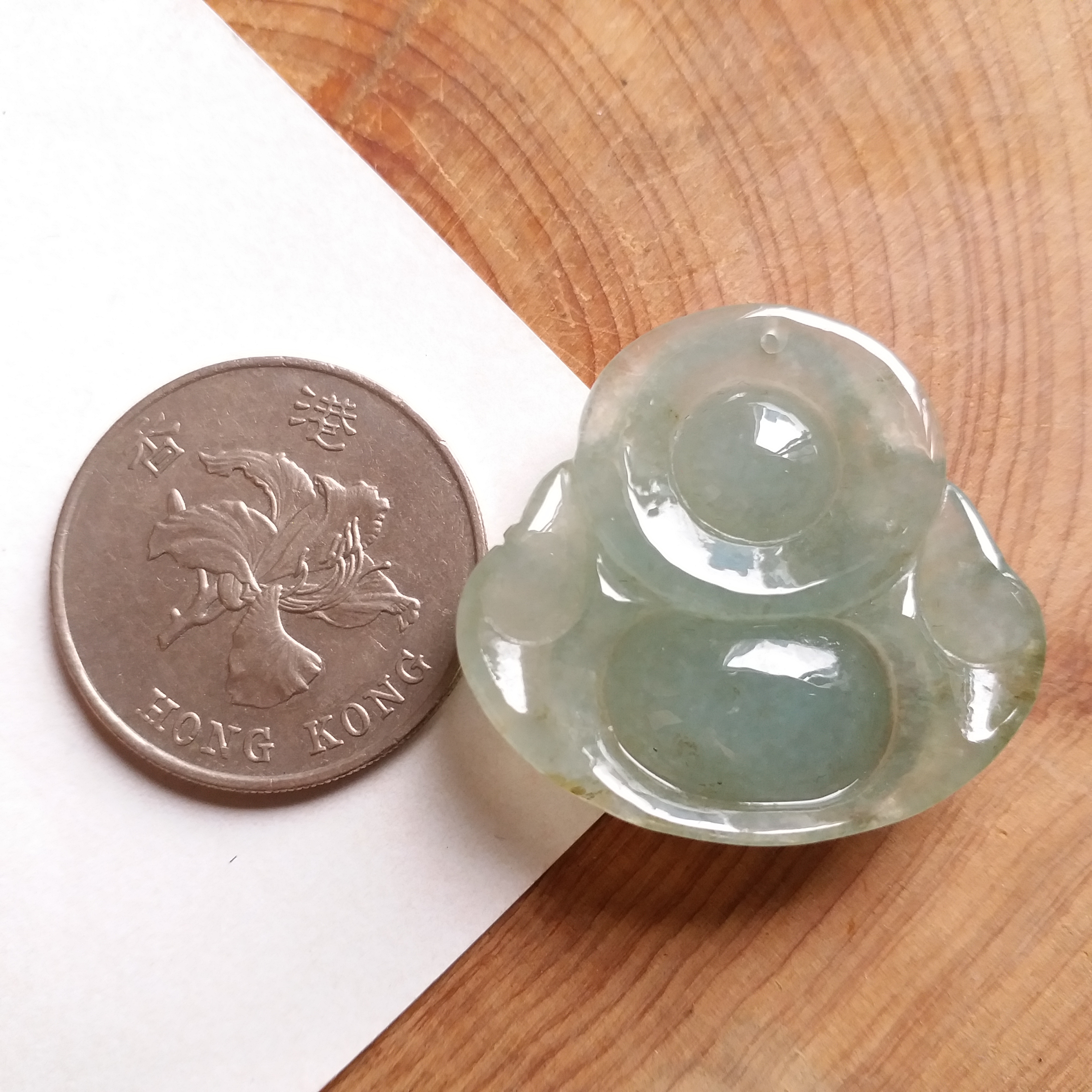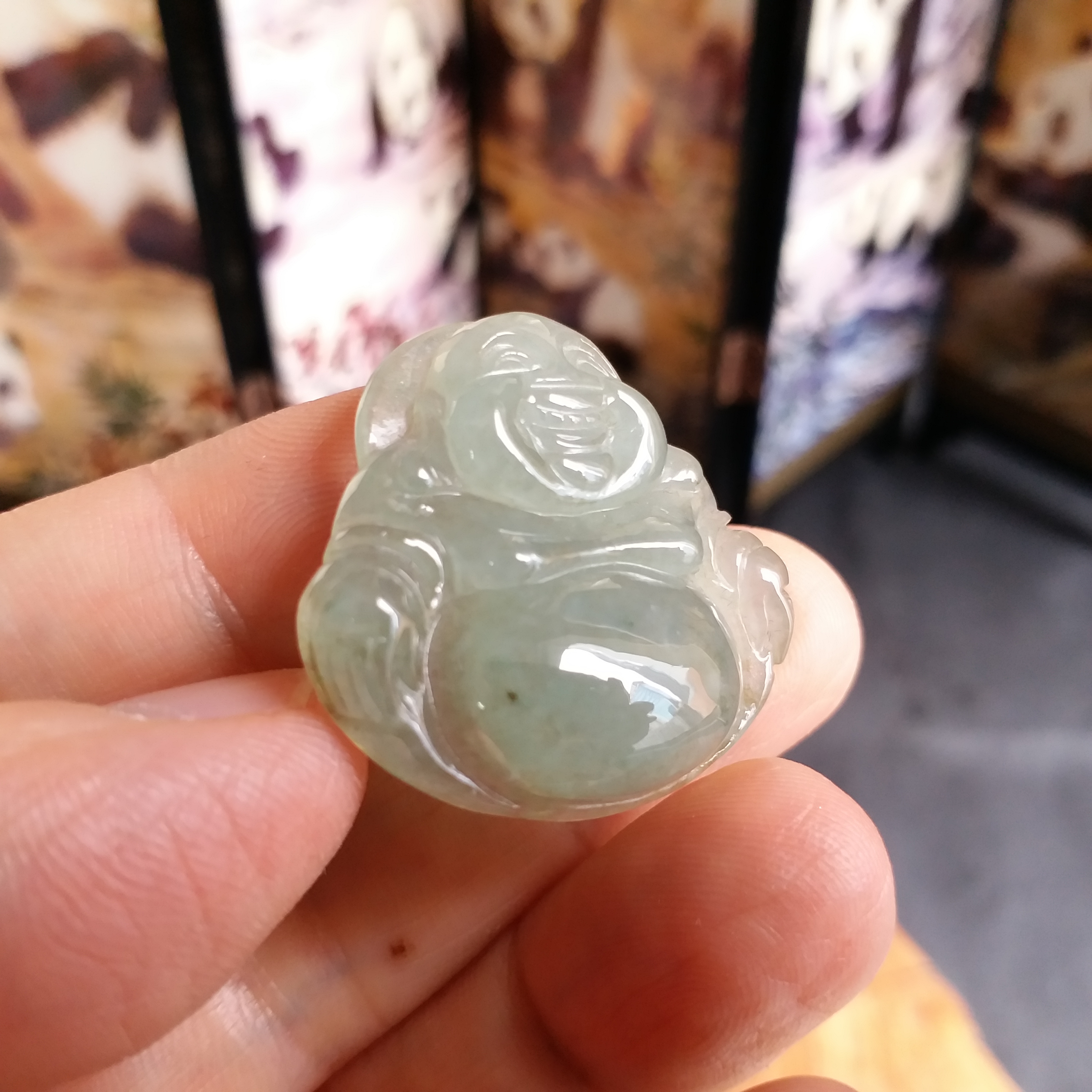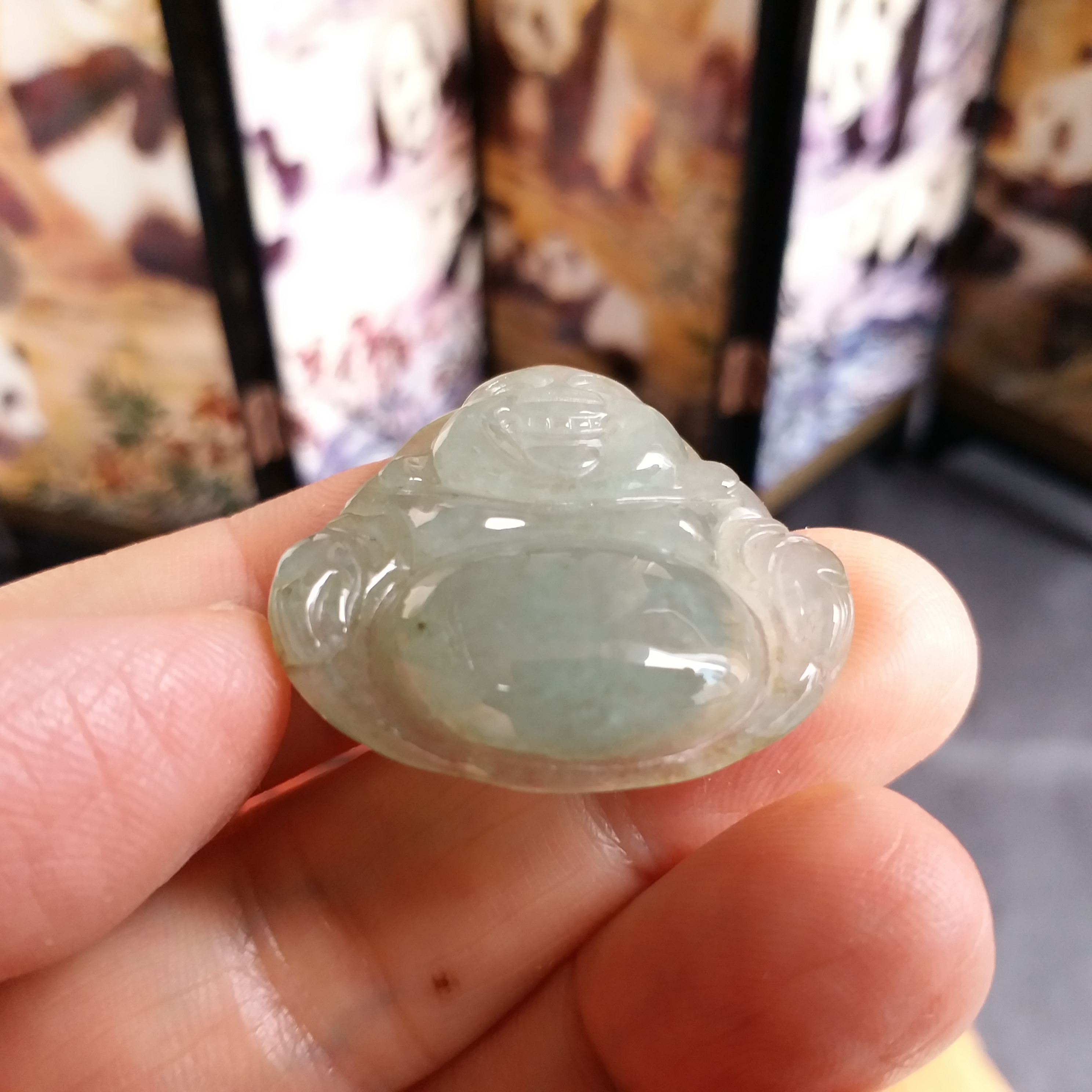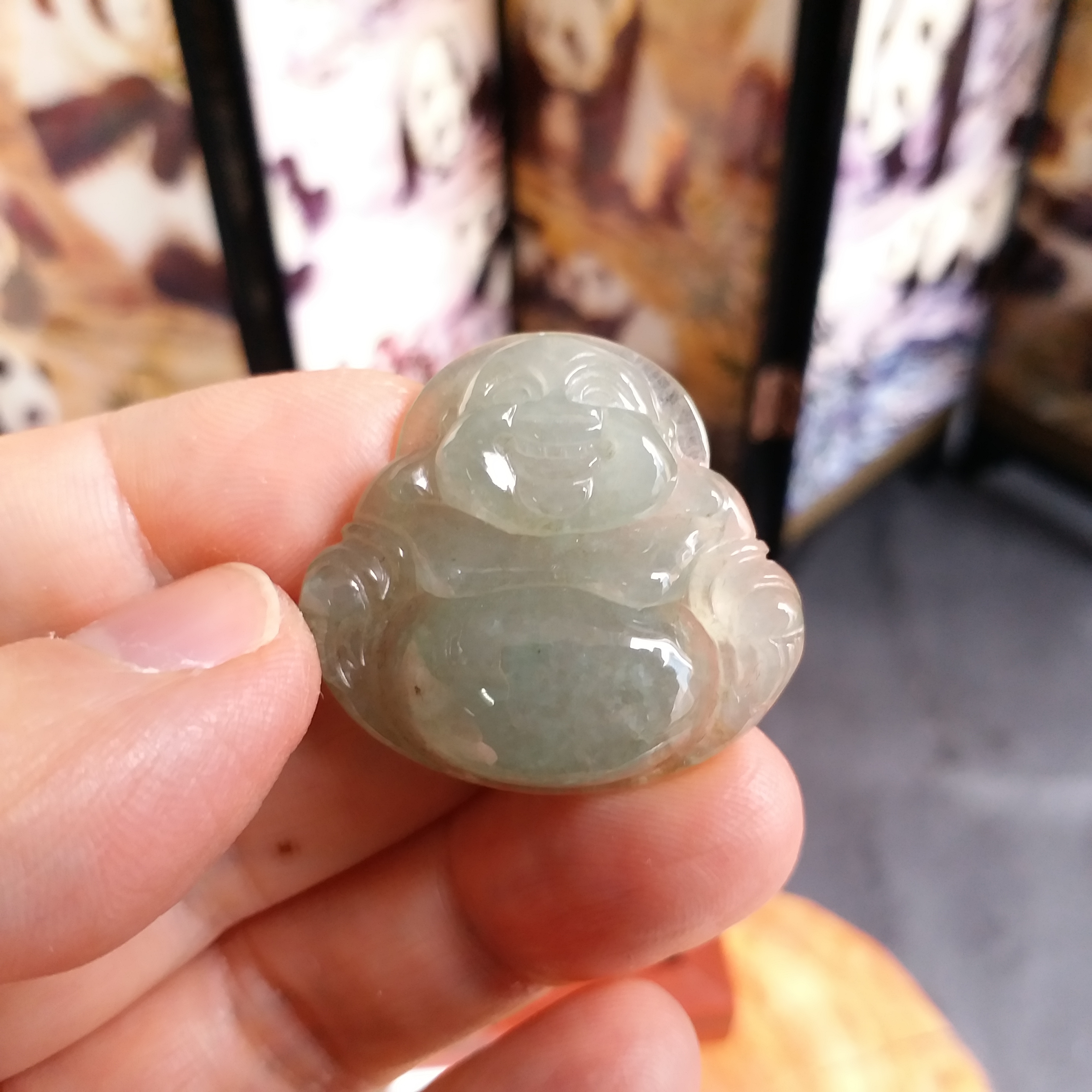 • 冰種淺綠笑彿, 天然翡翠A玉, 緬甸玉, Jade, Jadeite