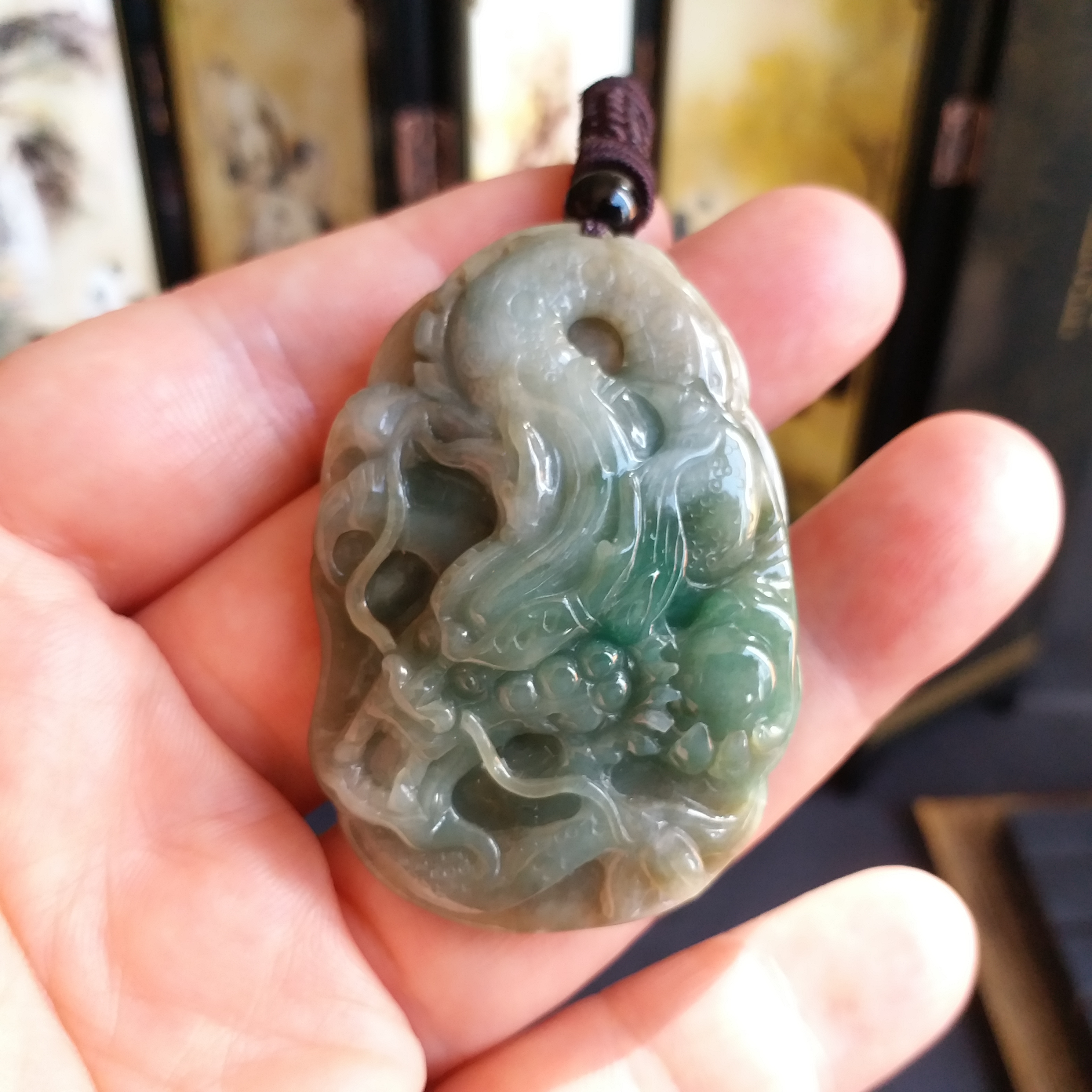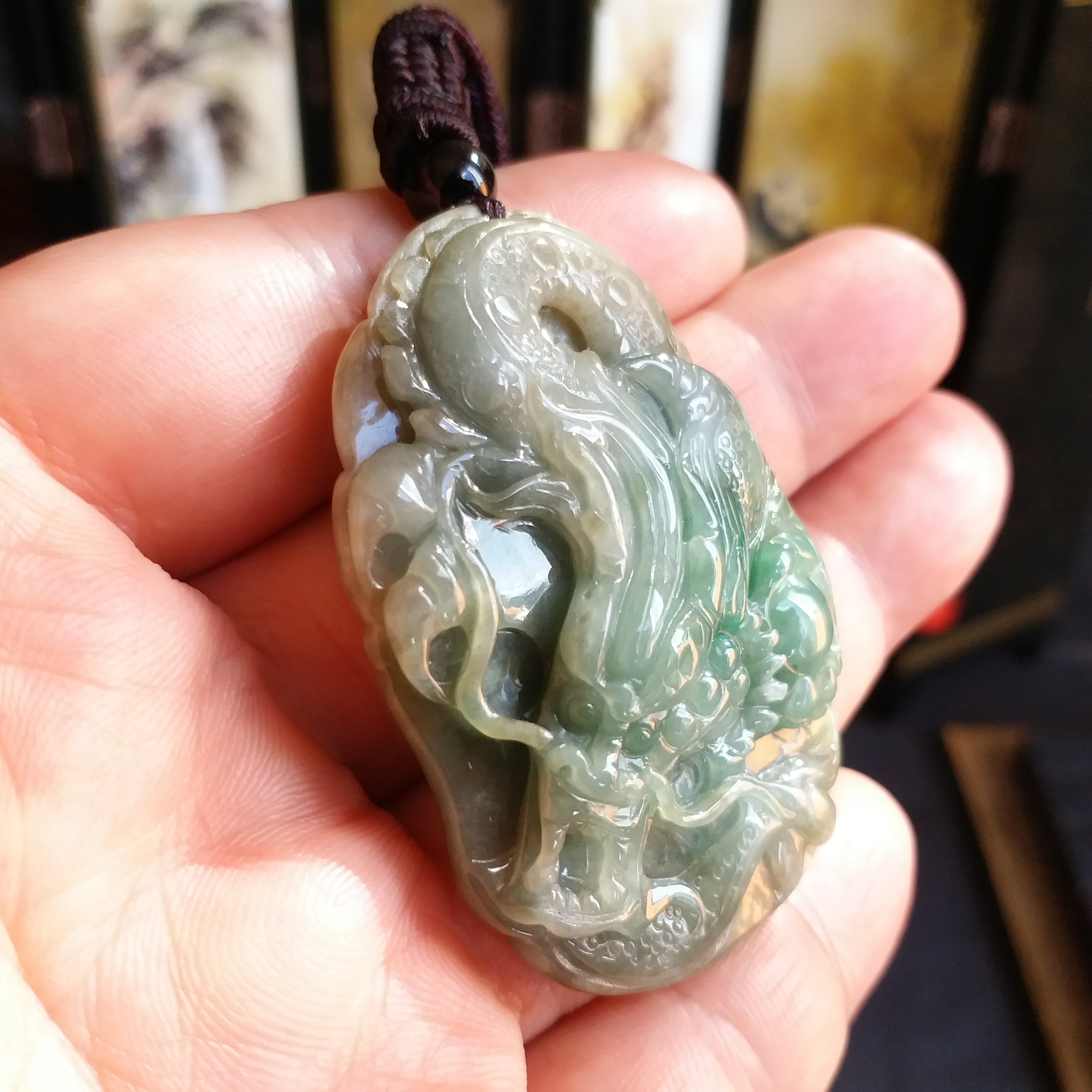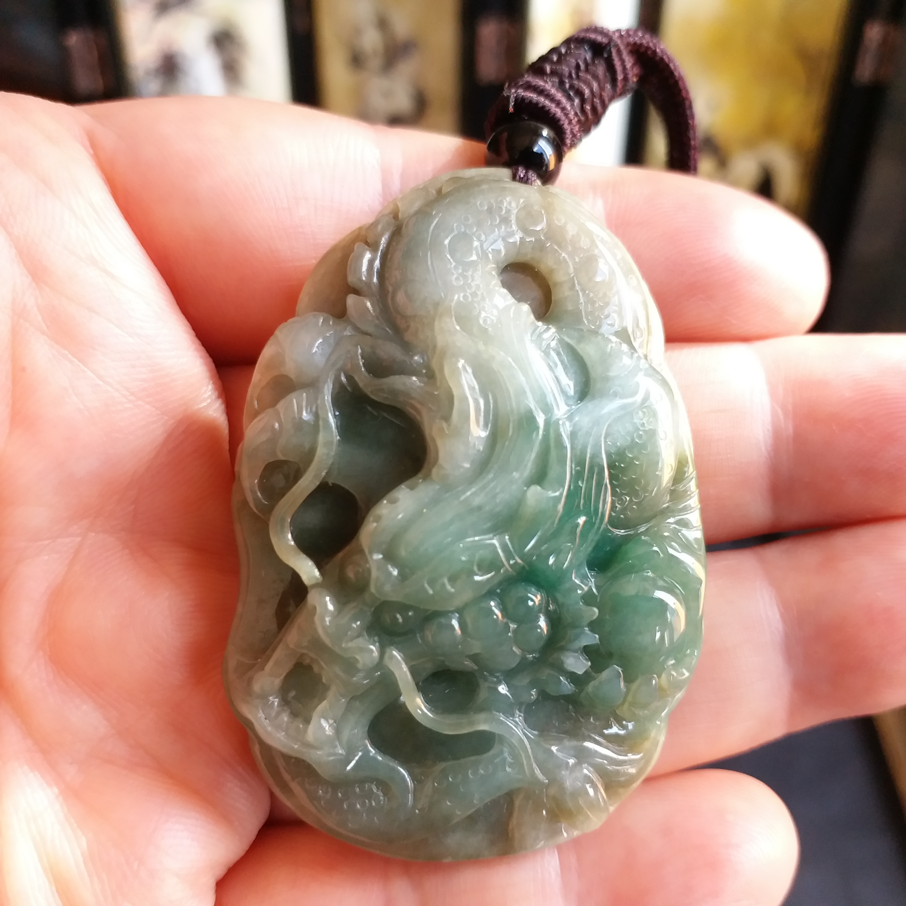 J907  冰糯俏色荷葉龍牌一夜成龍