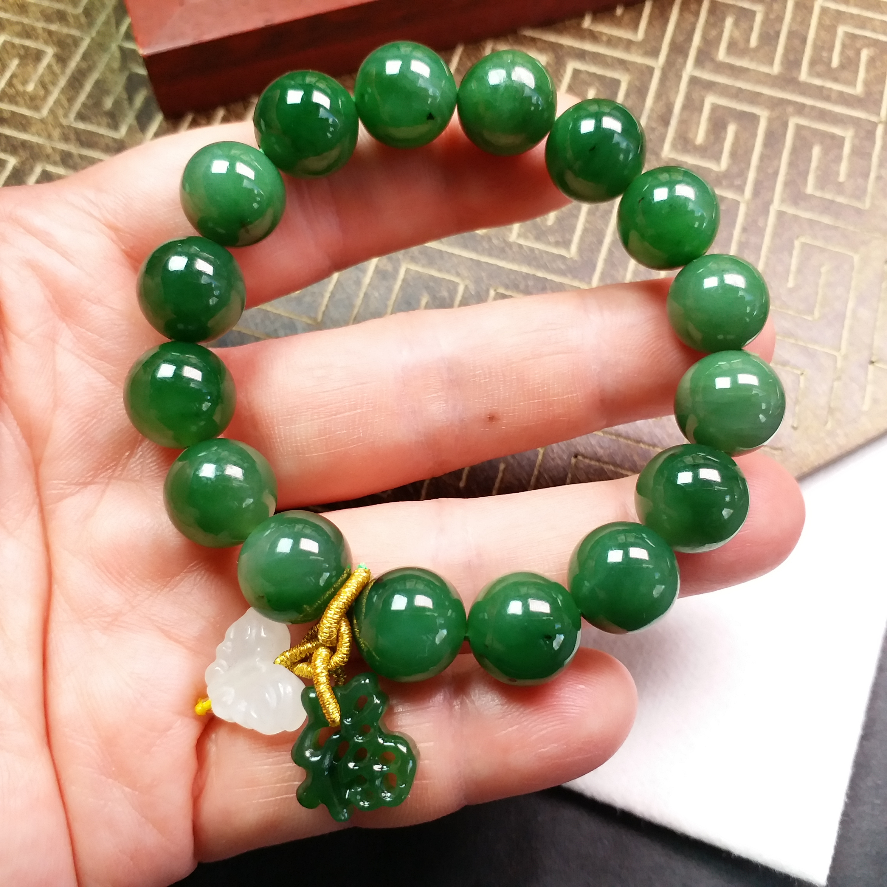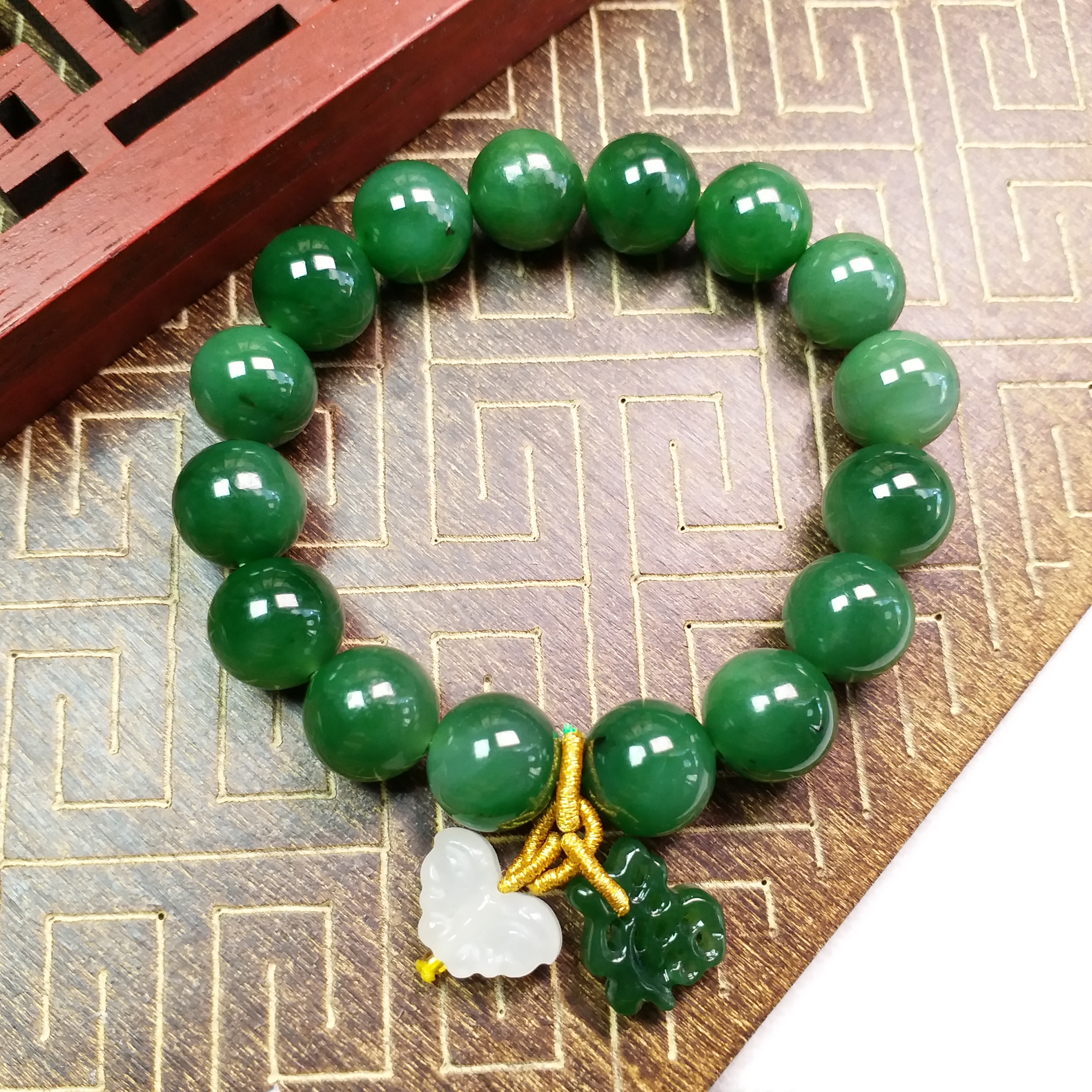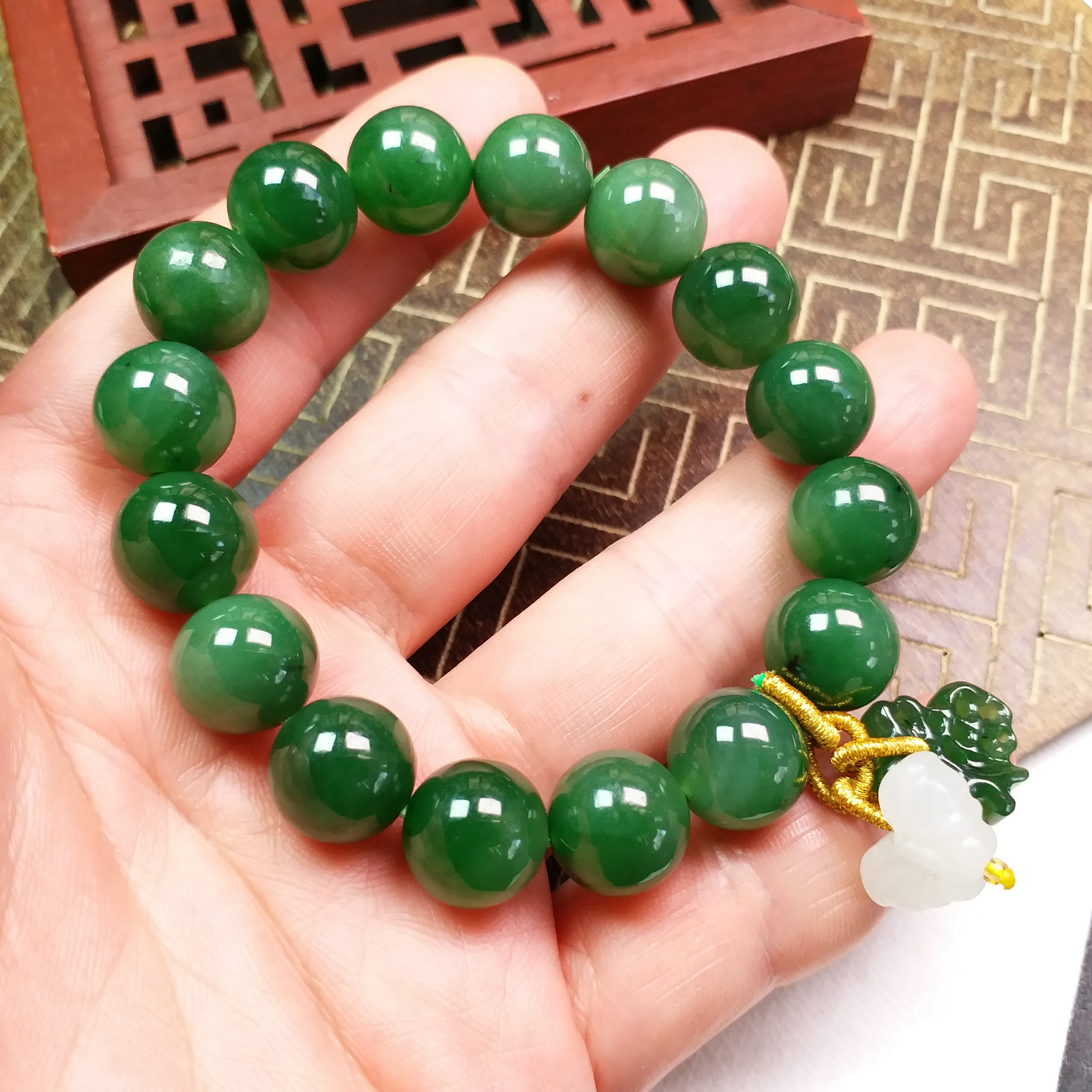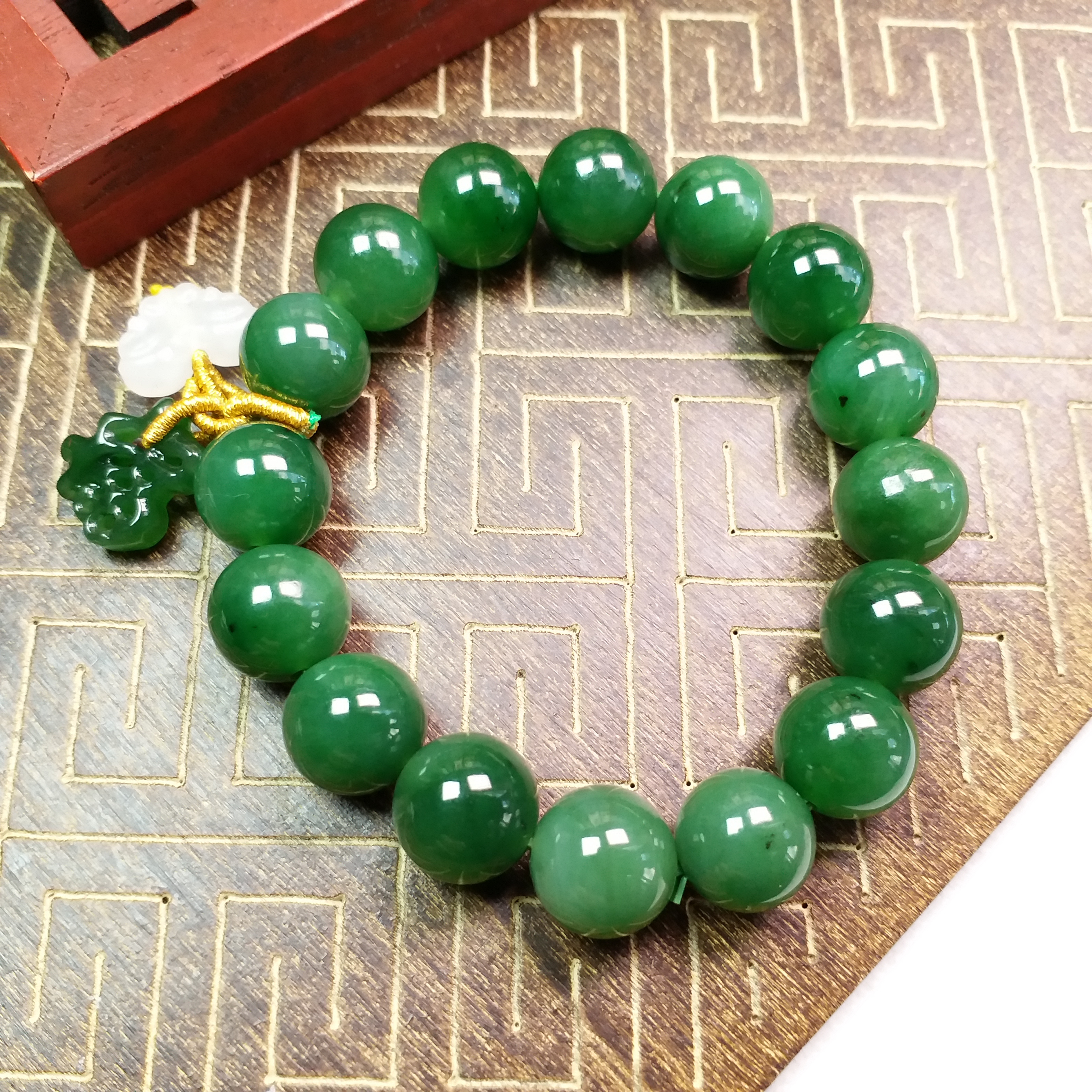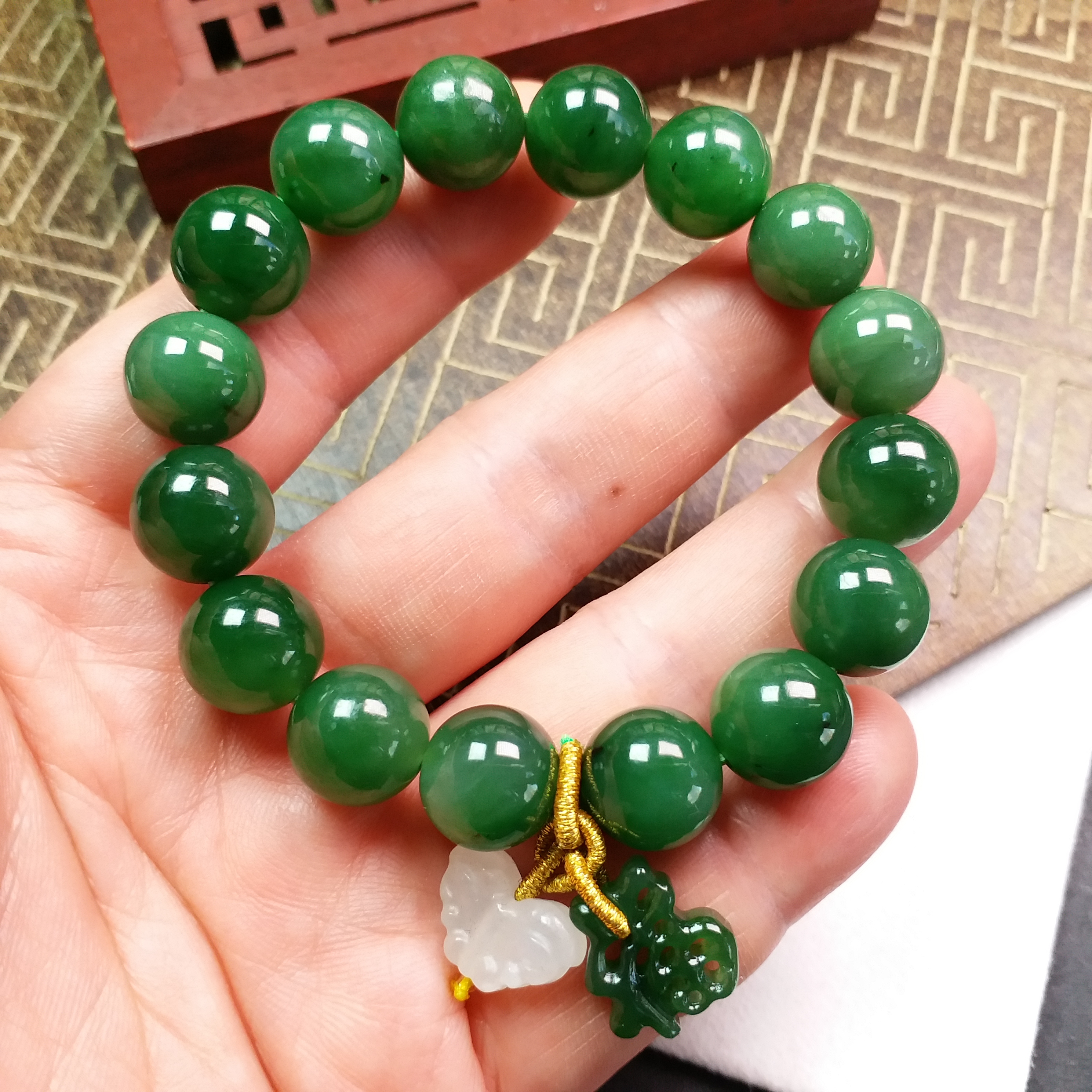 • 和田玉碧玉手珠串 (12mm直徑), 天然和田玉軟玉