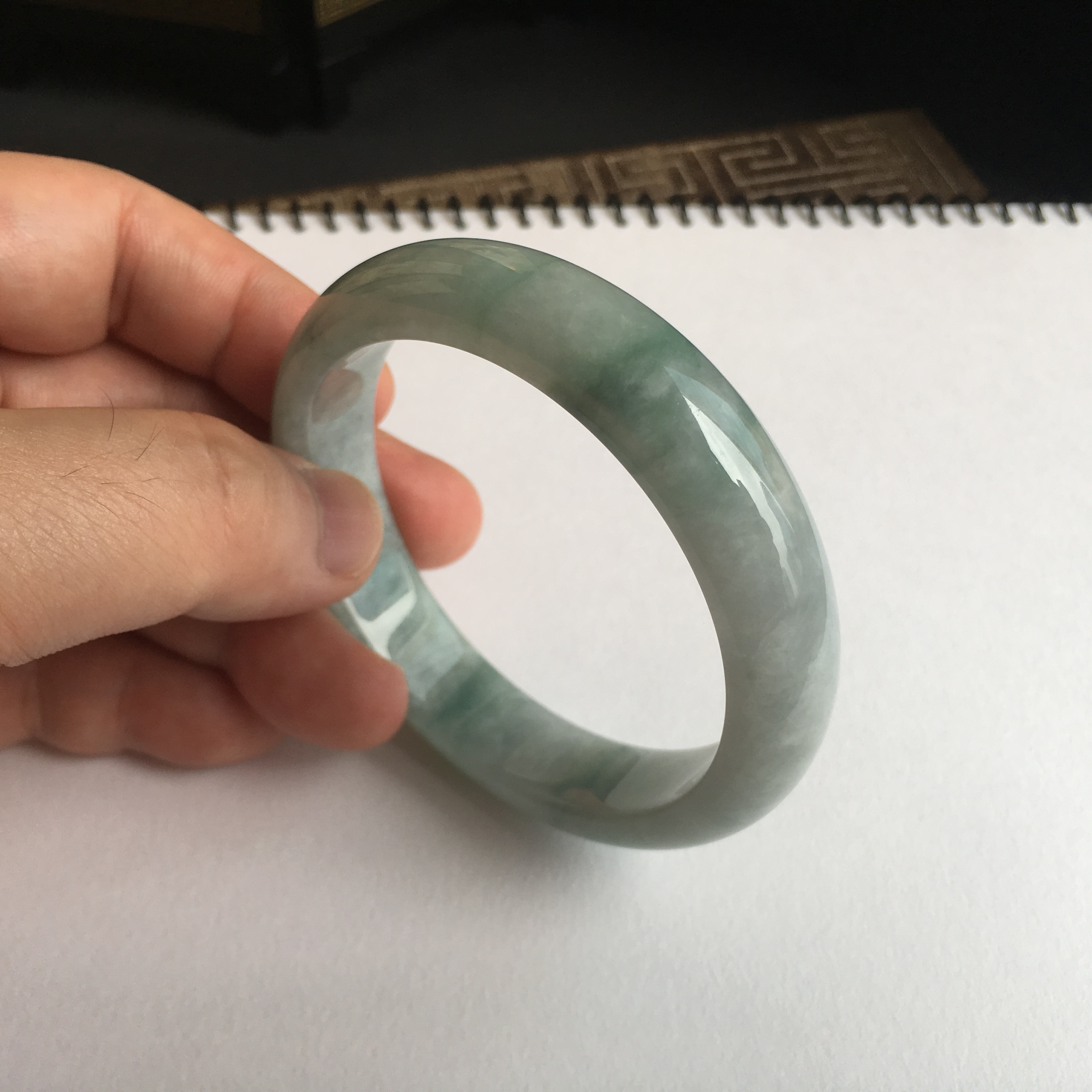 • 冰糯飄花玉鐲 58.8mm, 天然翡翠A玉, 緬甸玉, Jade, Jadeite