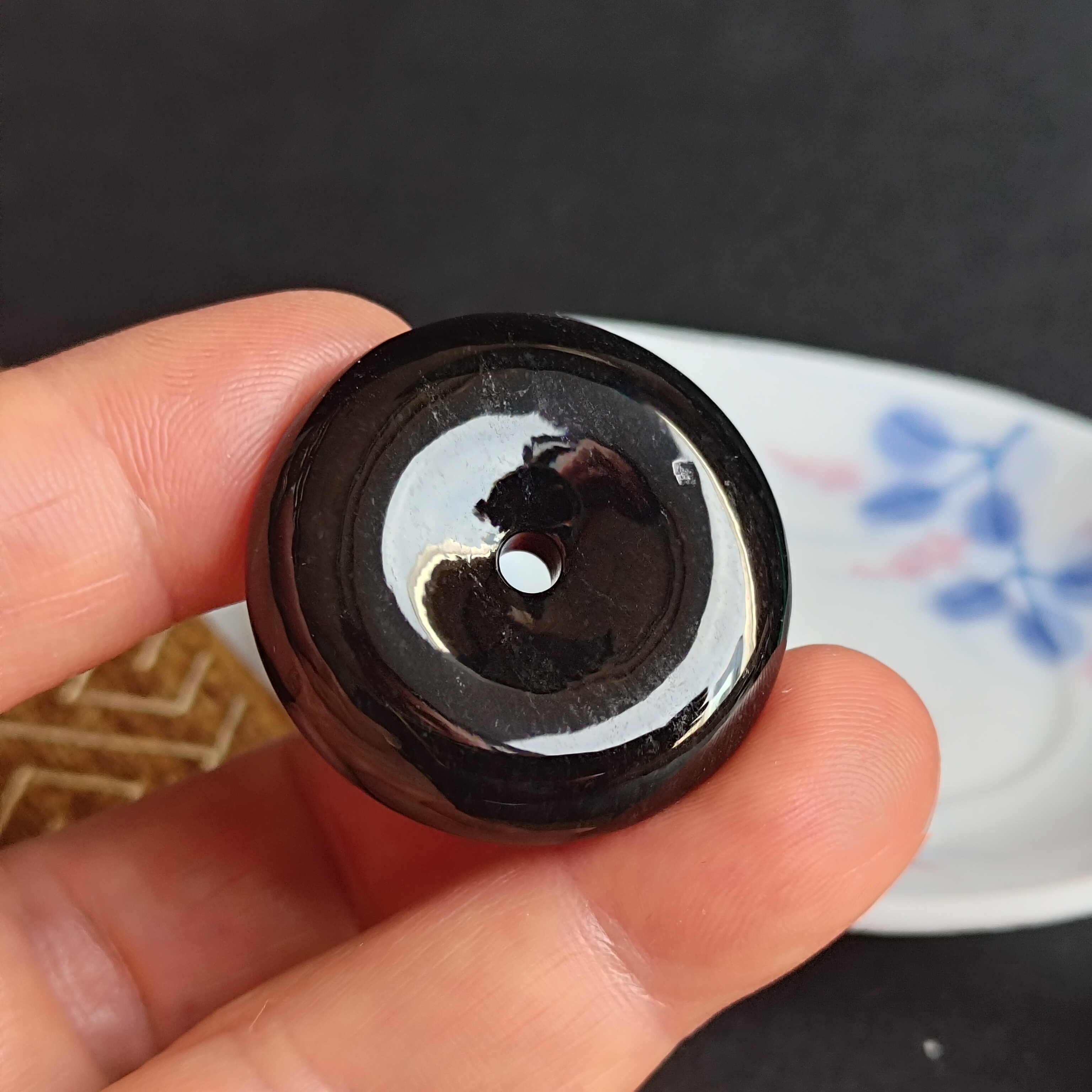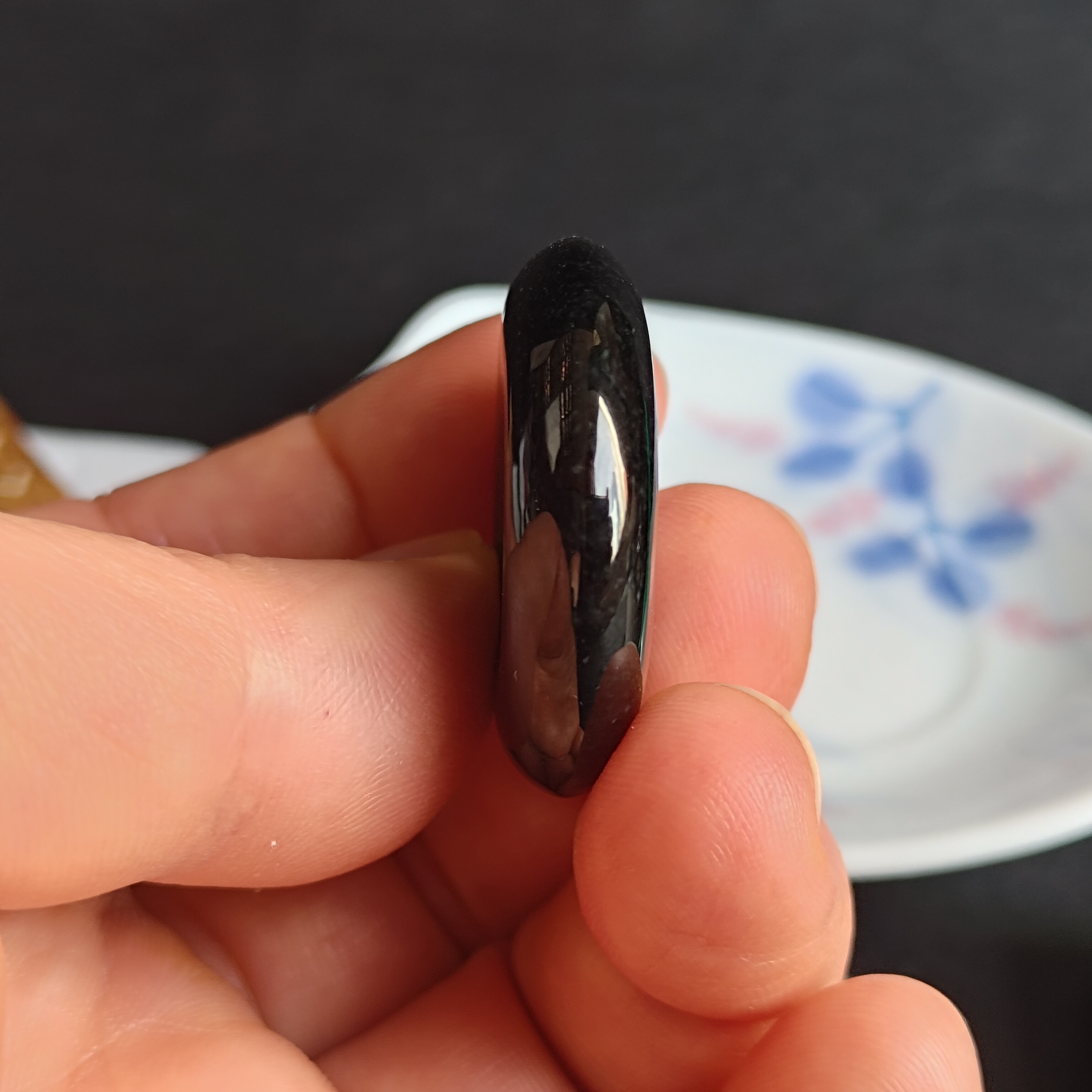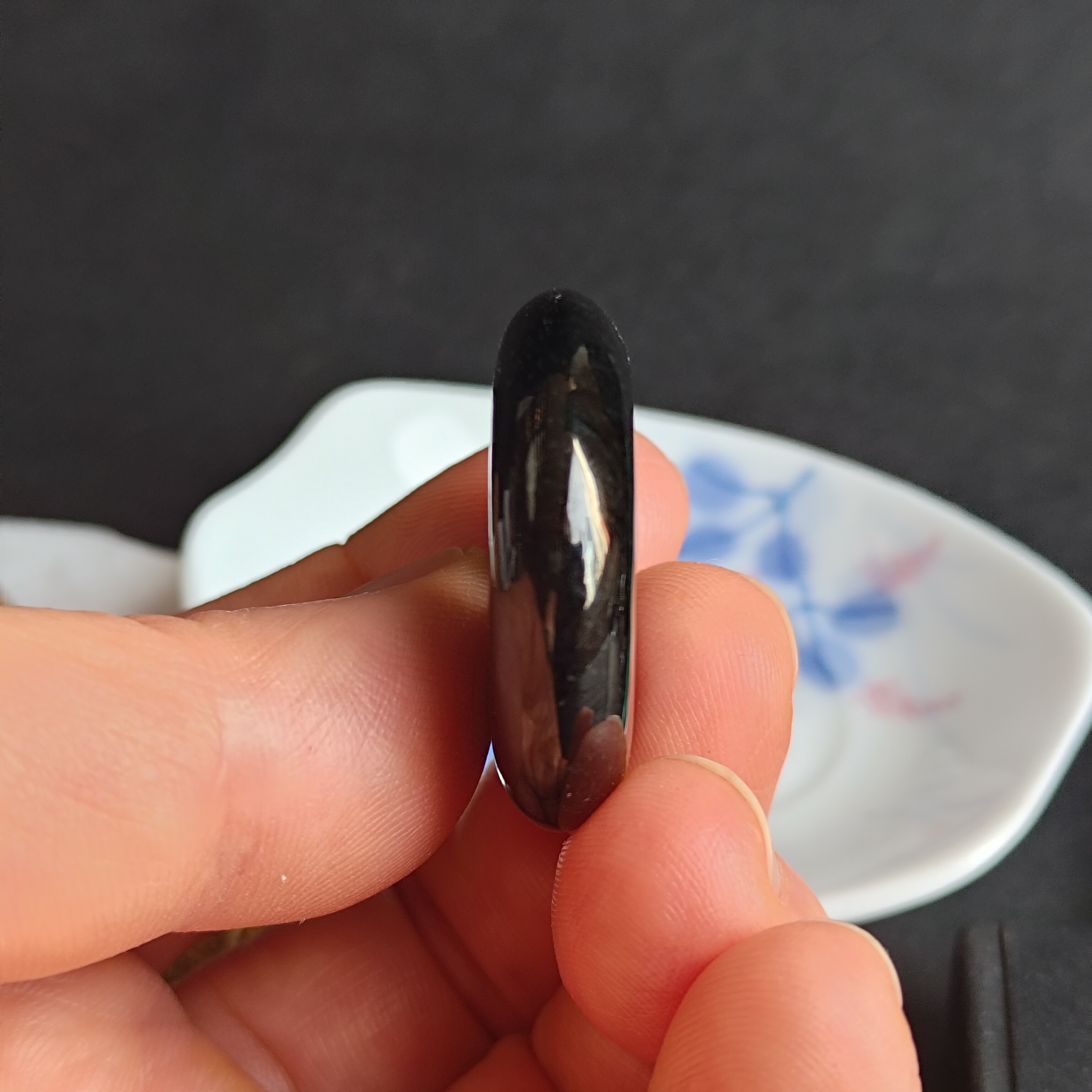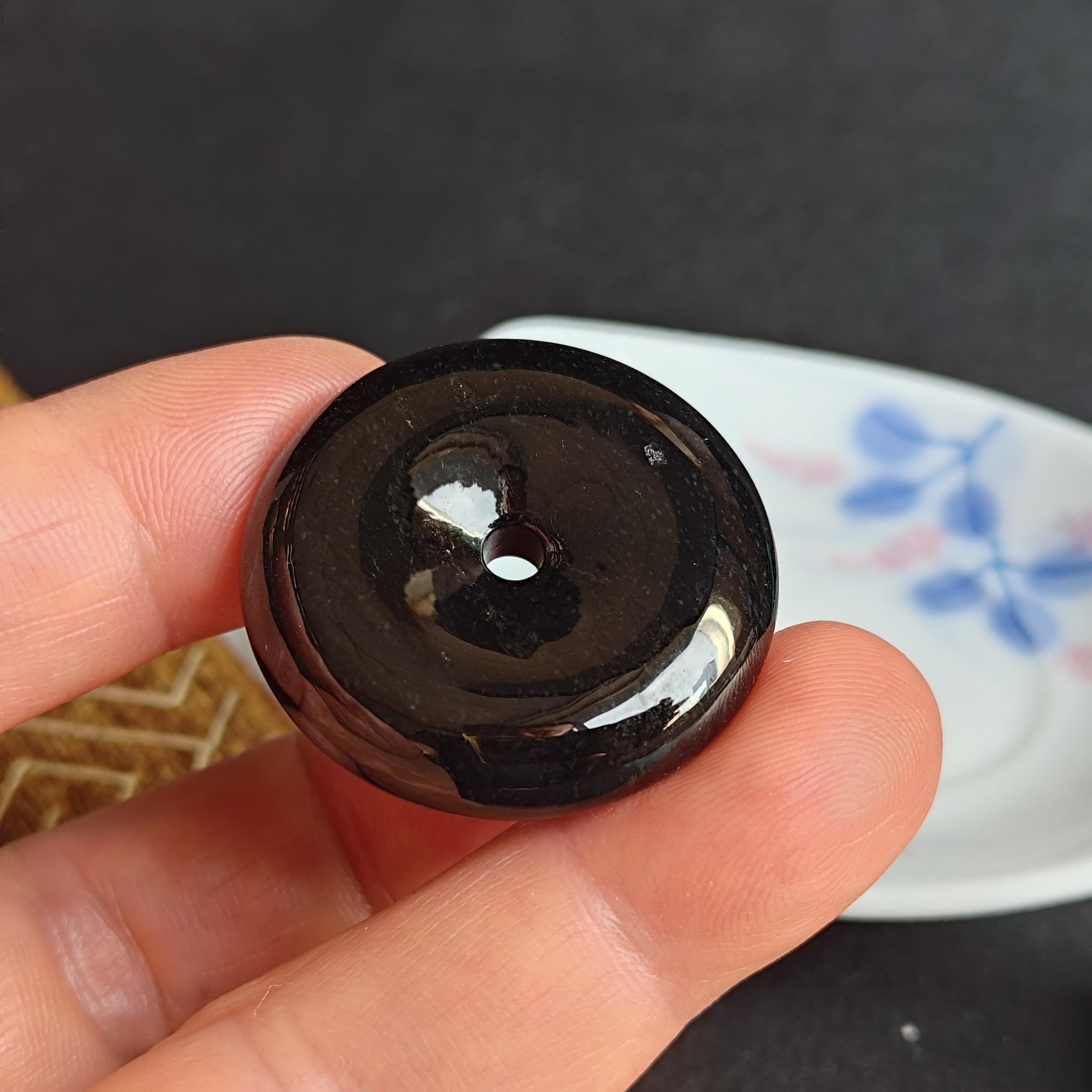 天然翡翠A玉,入門級墨翠,黑度夠,烏黑發亮,有天然小礦缺(請看video),無裂,無礙。