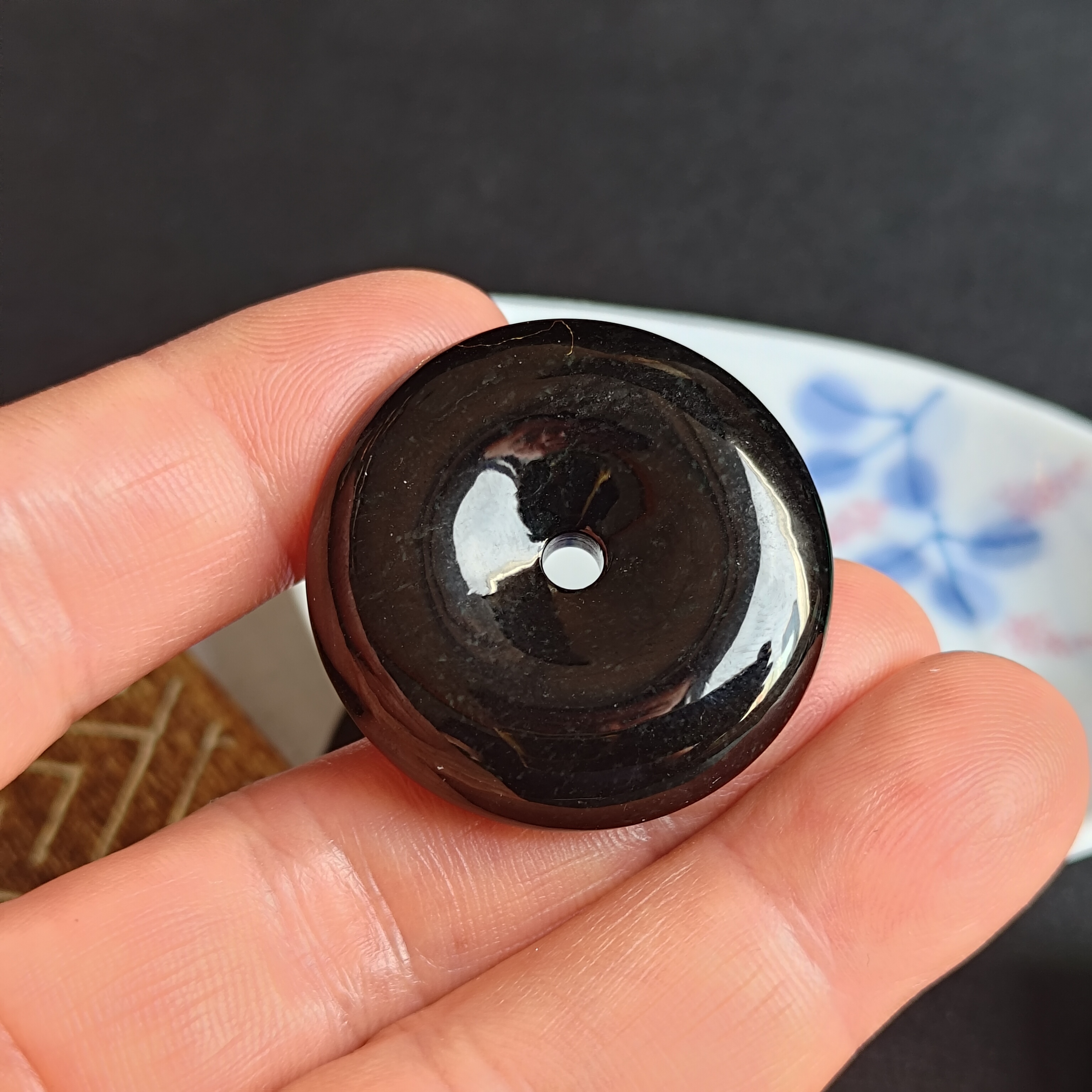 • 墨翠平安扣 (32mm直徑),天然翡翠A玉, 緬甸玉, Jade, Jadeite