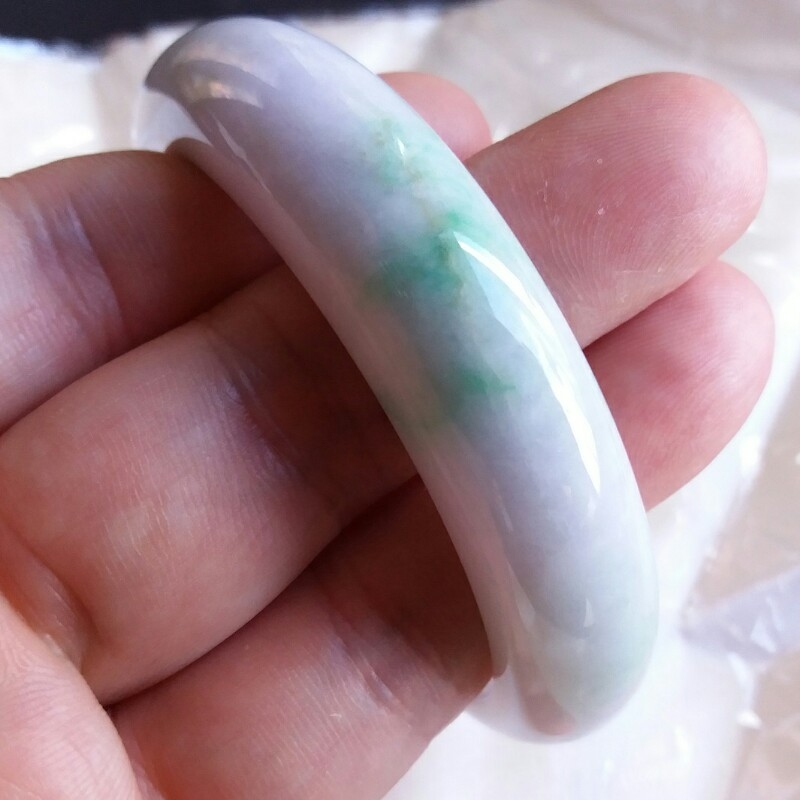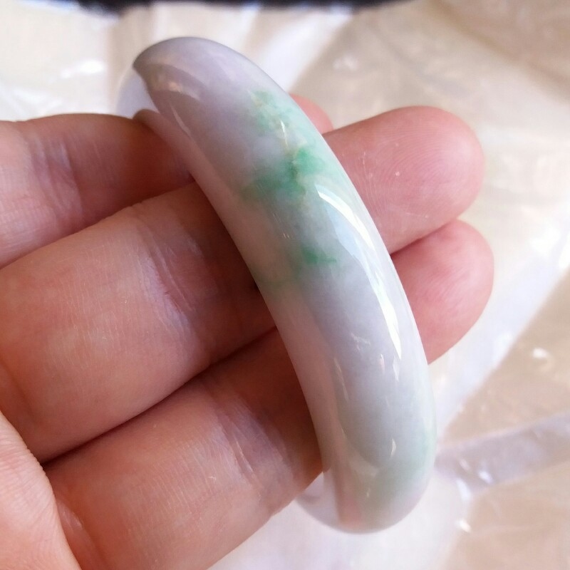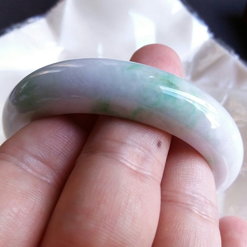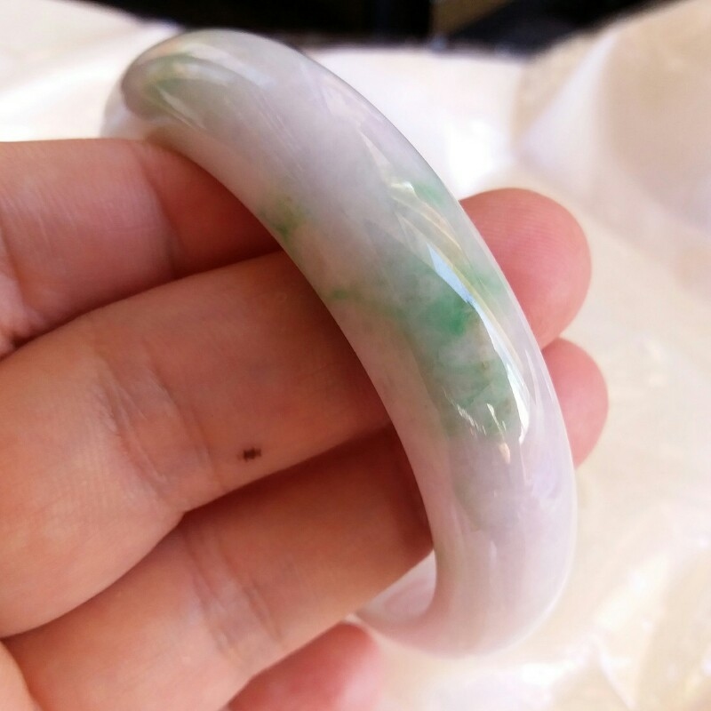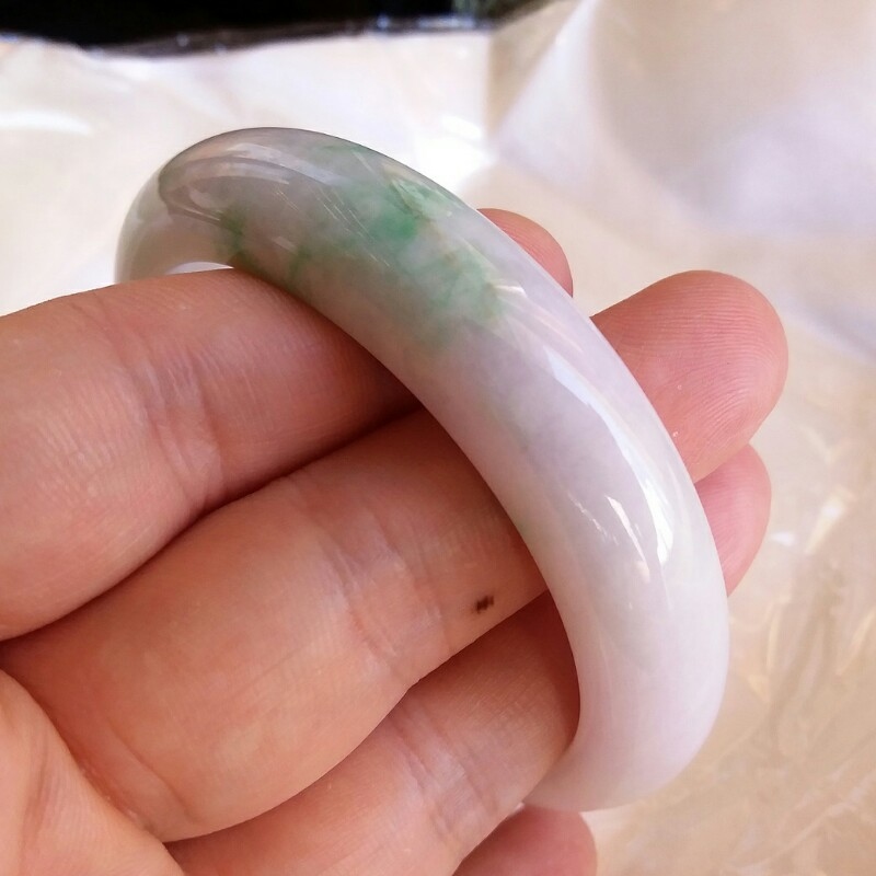 • 冰糯白紫底飄綠玉鐲 57.95mm, 天然翡翠A玉, 緬甸玉, Jade, Jadeite