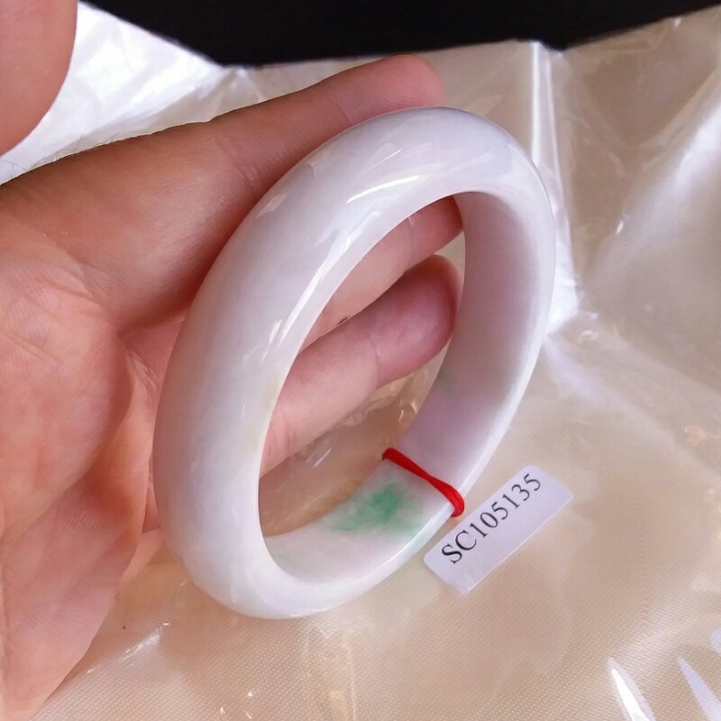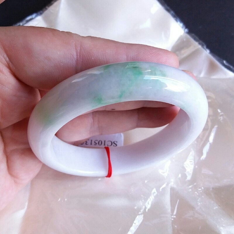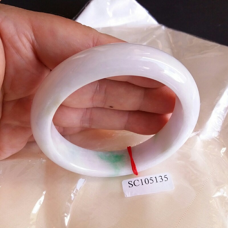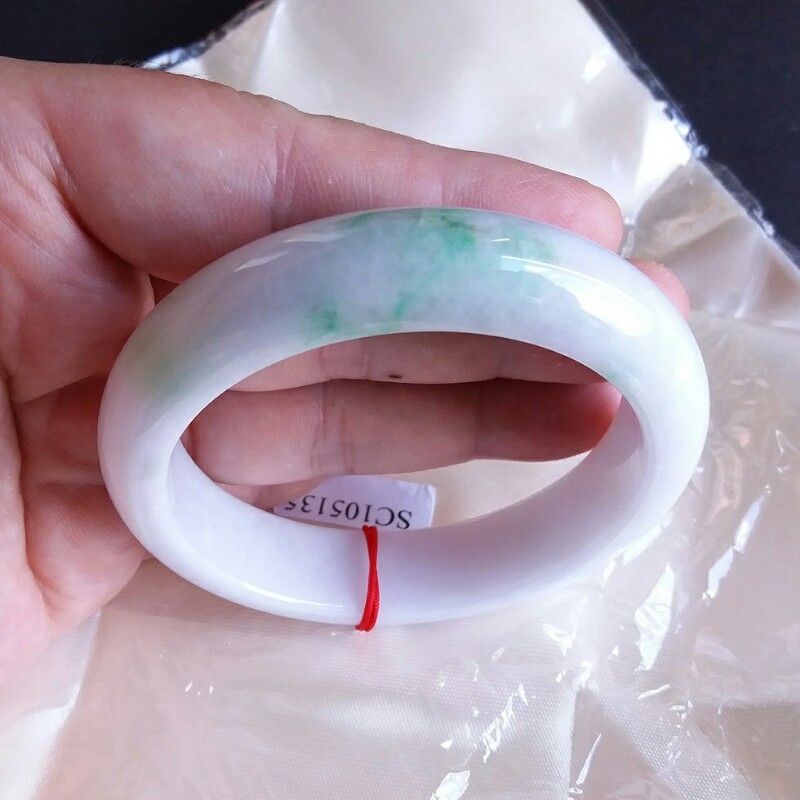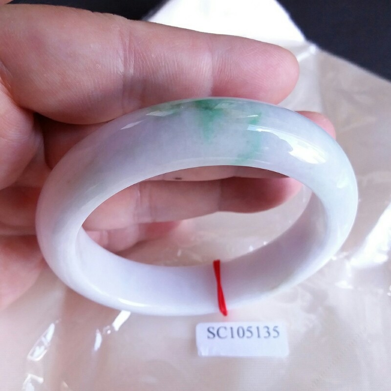 JP522 冰糯白紫底飄綠玉鐲 57.95mm (1.55)