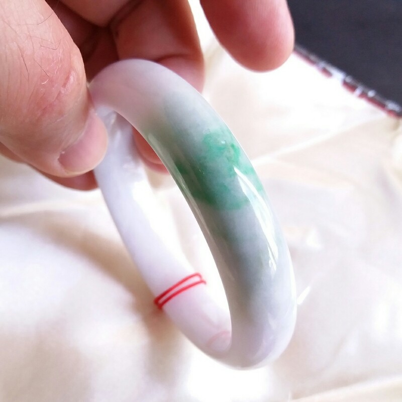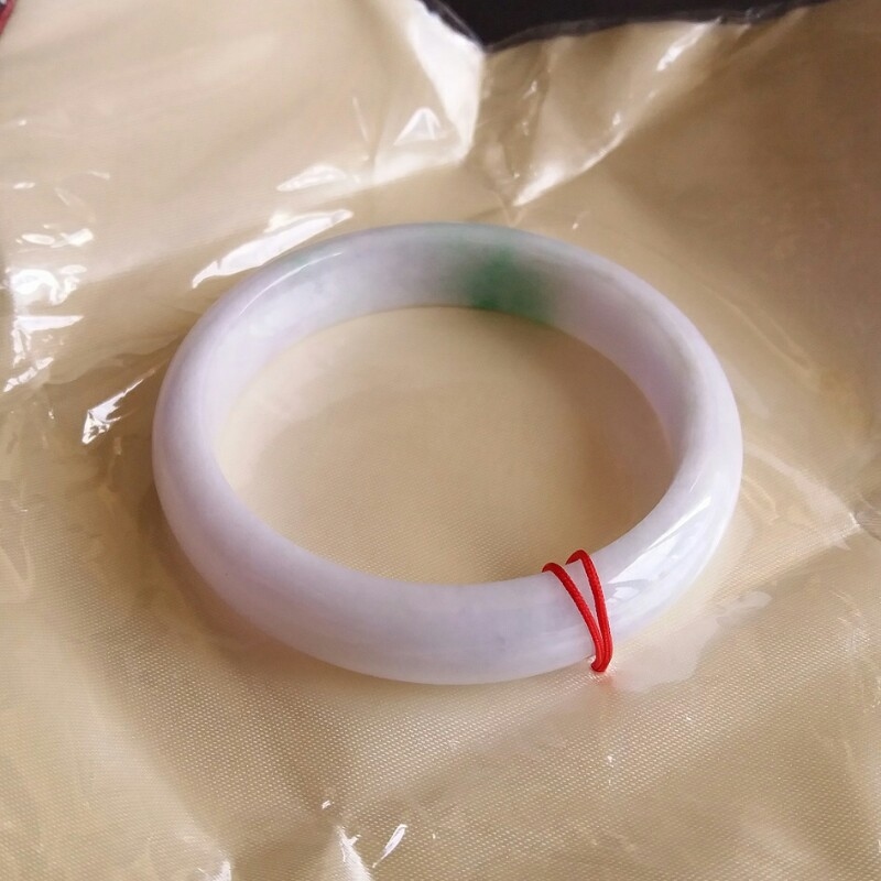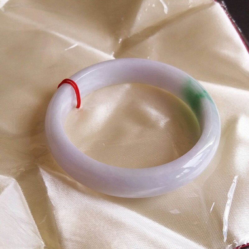 • 冰糯粉紫底飄陽綠玉鐲 57mm, 天然翡翠A玉, 緬甸玉, Jade, Jadeite