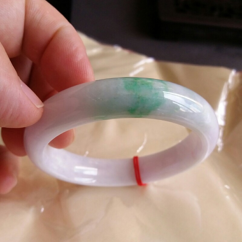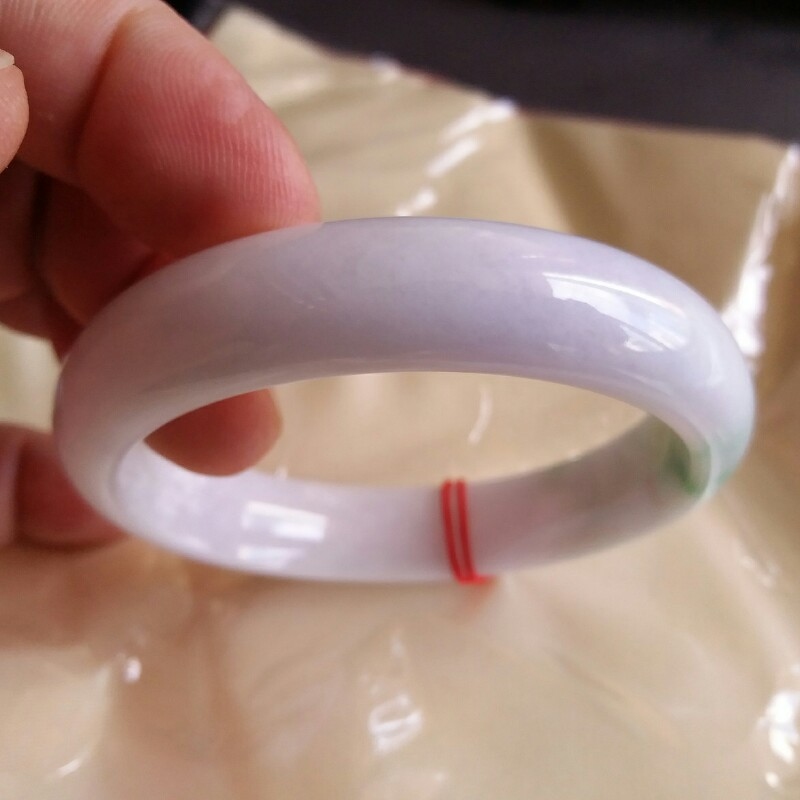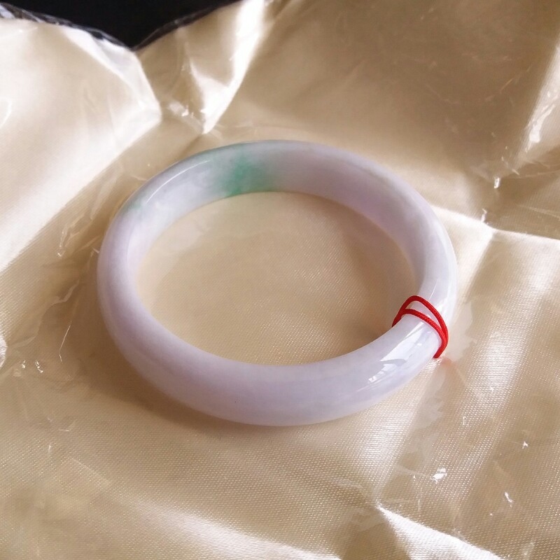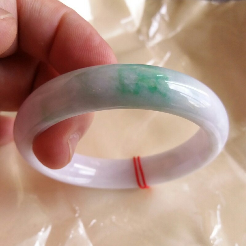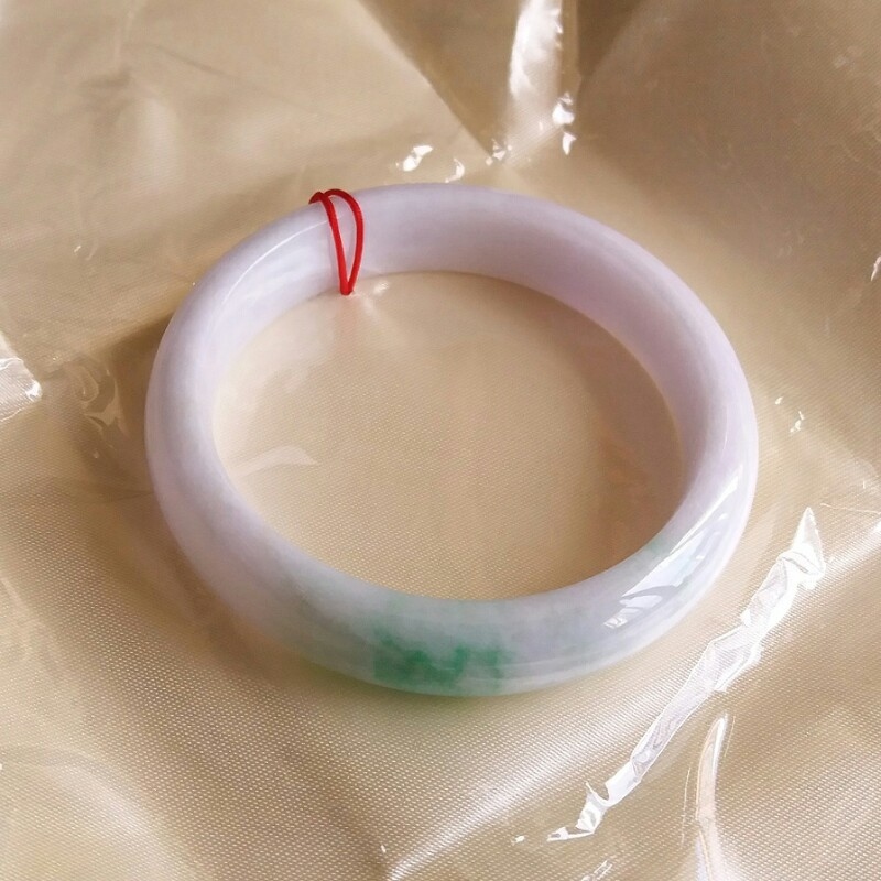 JP560 冰糯粉紫底飄陽綠玉鐲 57mm (1.52)