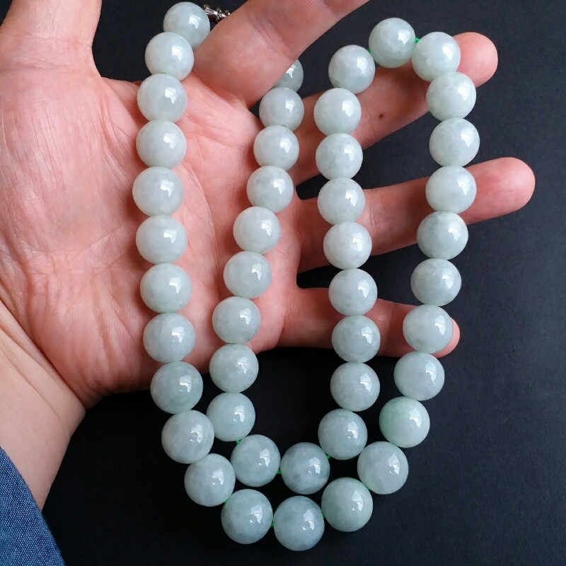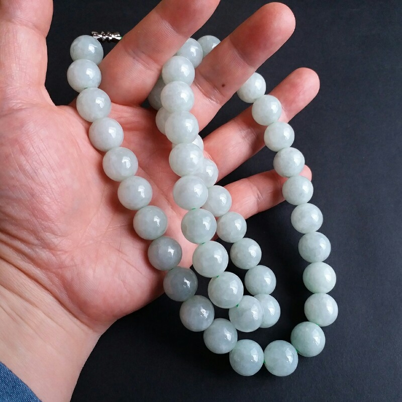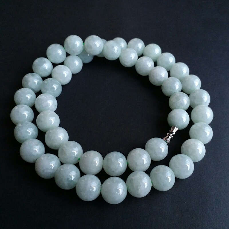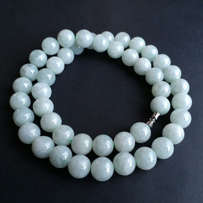 • 冰萍果綠翡翠玉珠項鍊 (13.2mm直徑), 天然翡翠A玉, 緬甸玉, Jade, Jadeite