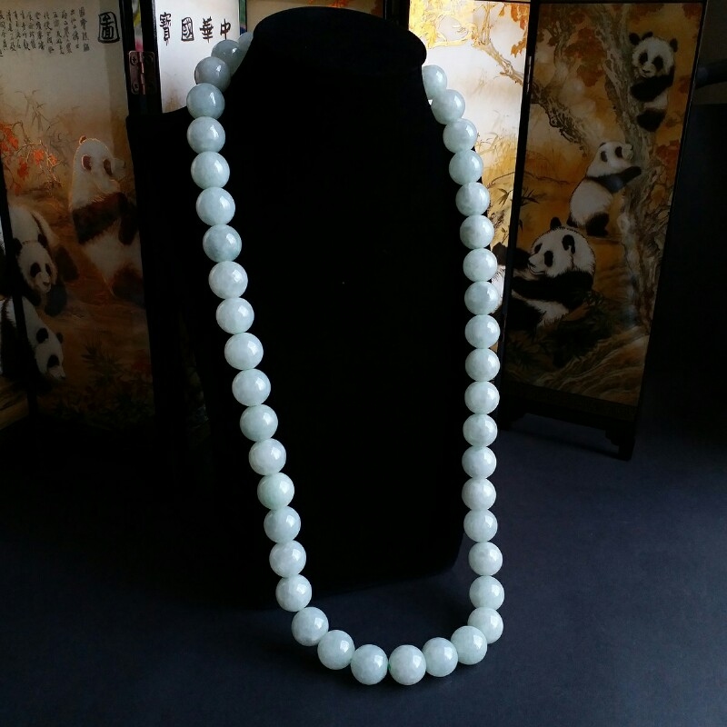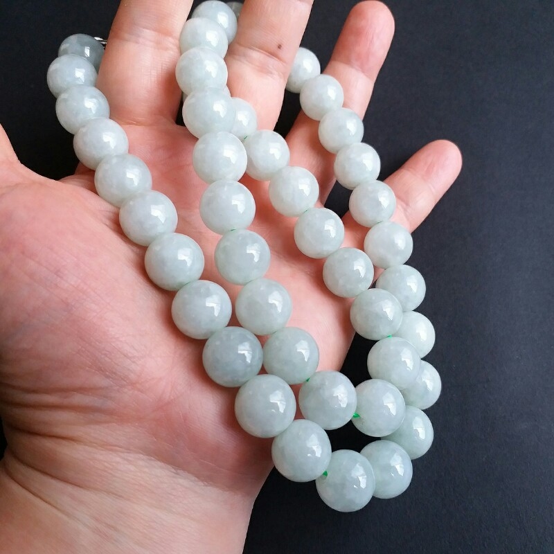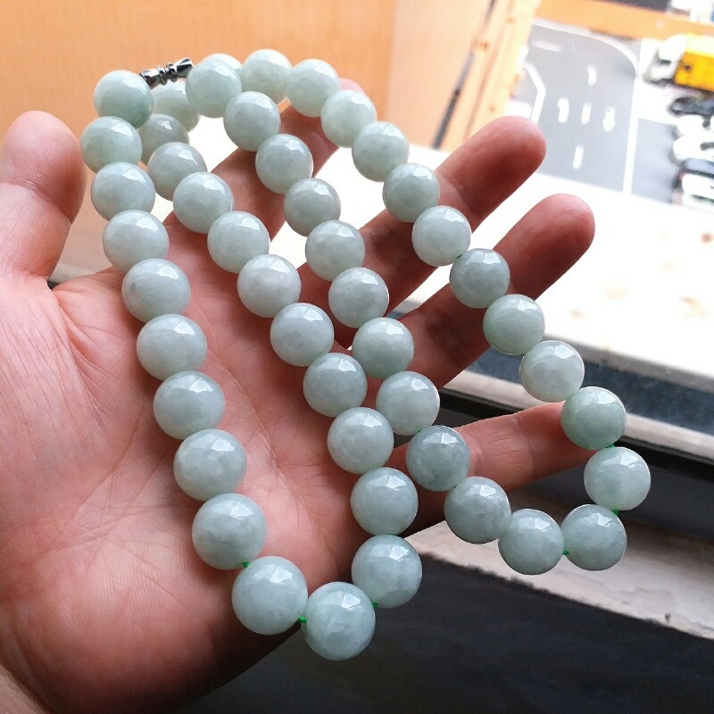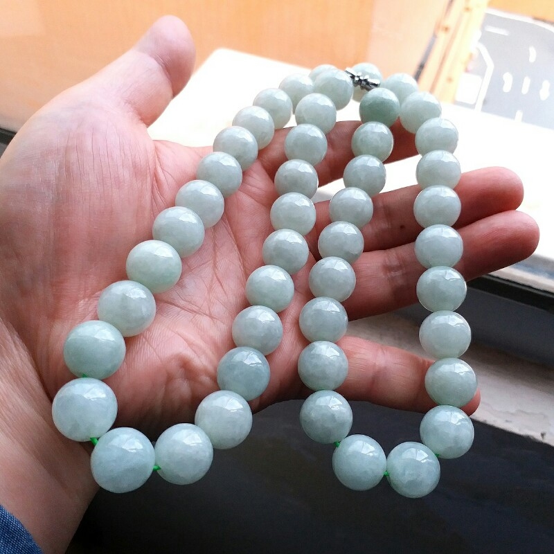 JP848 冰萍果綠翡翠玉珠項鍊 (13.2mm直徑)