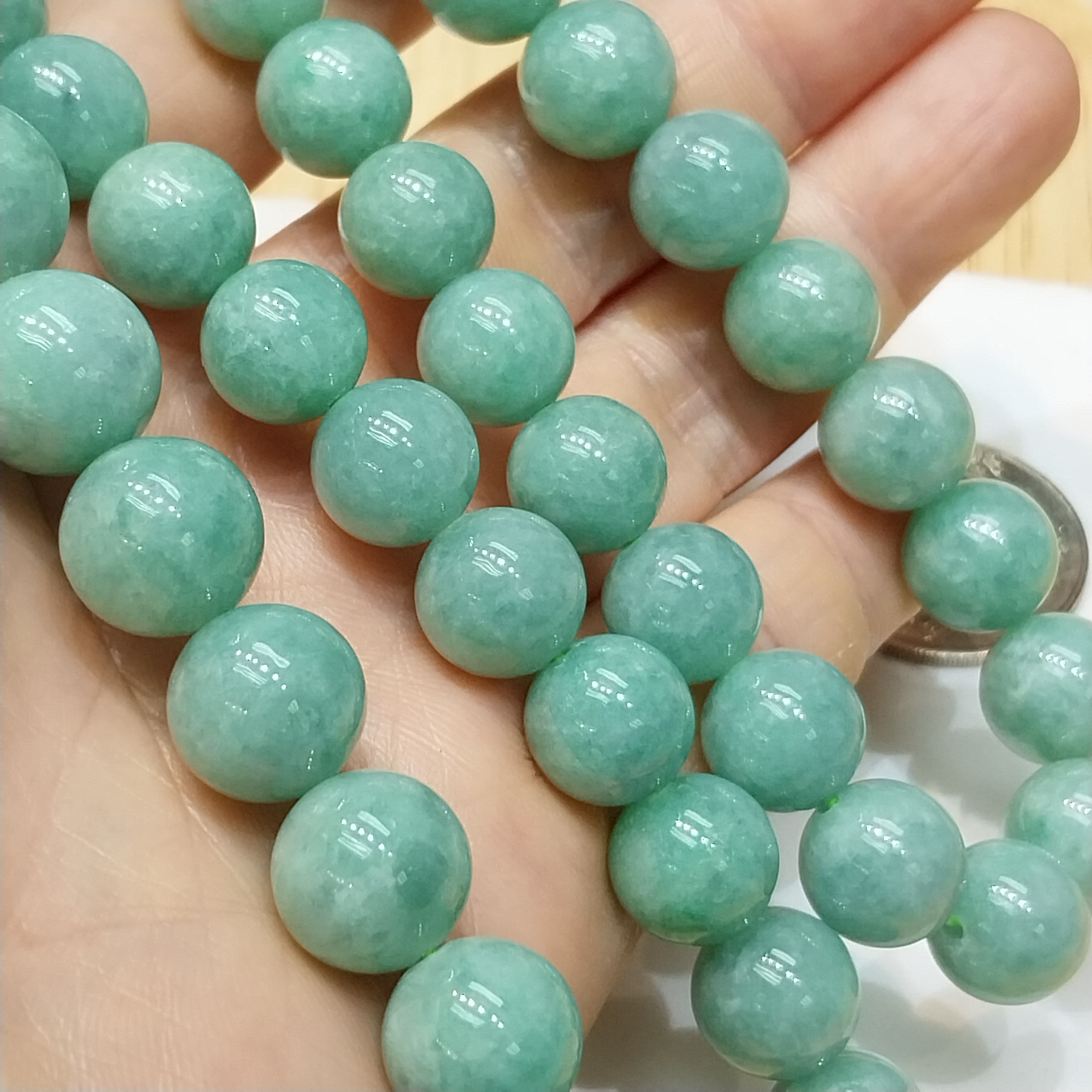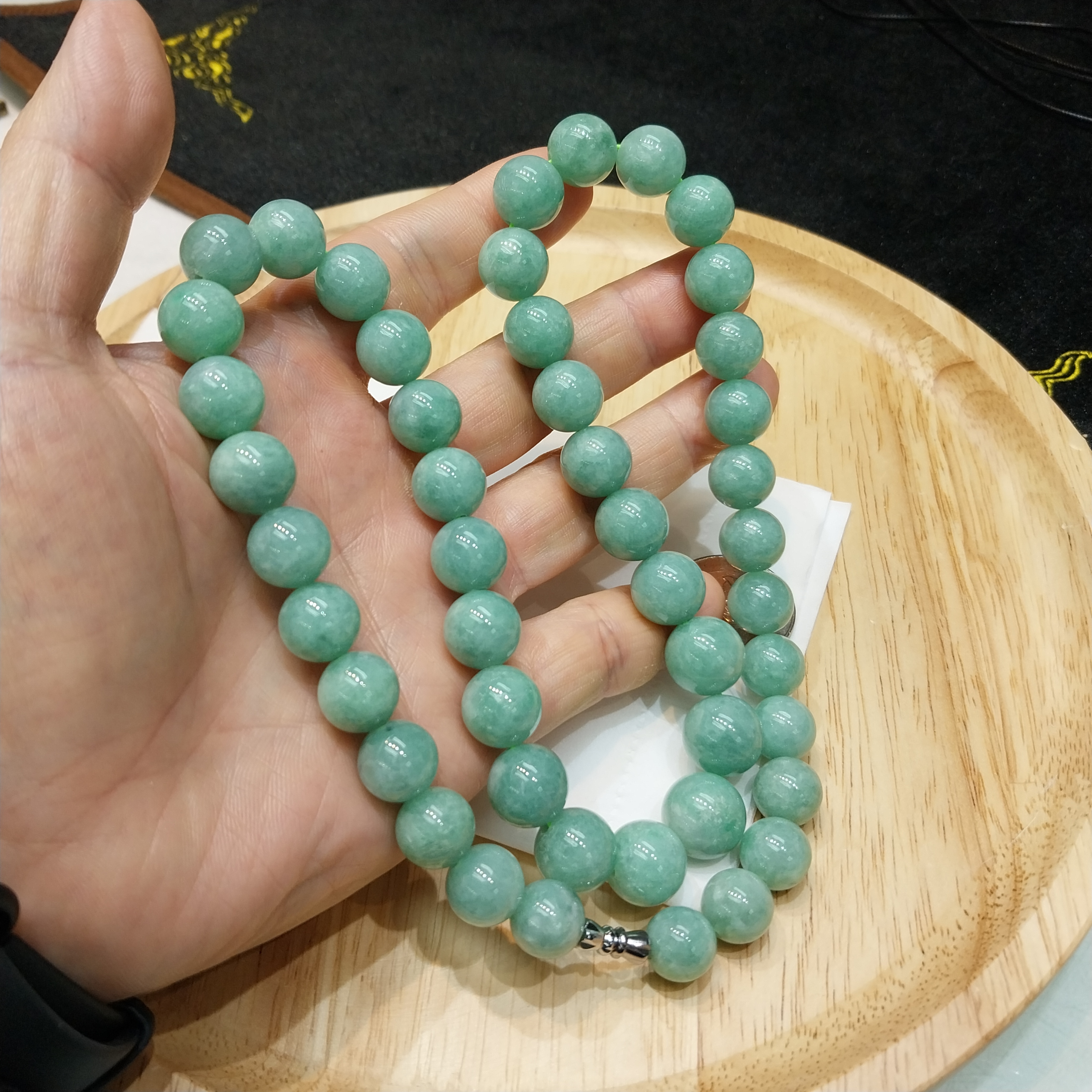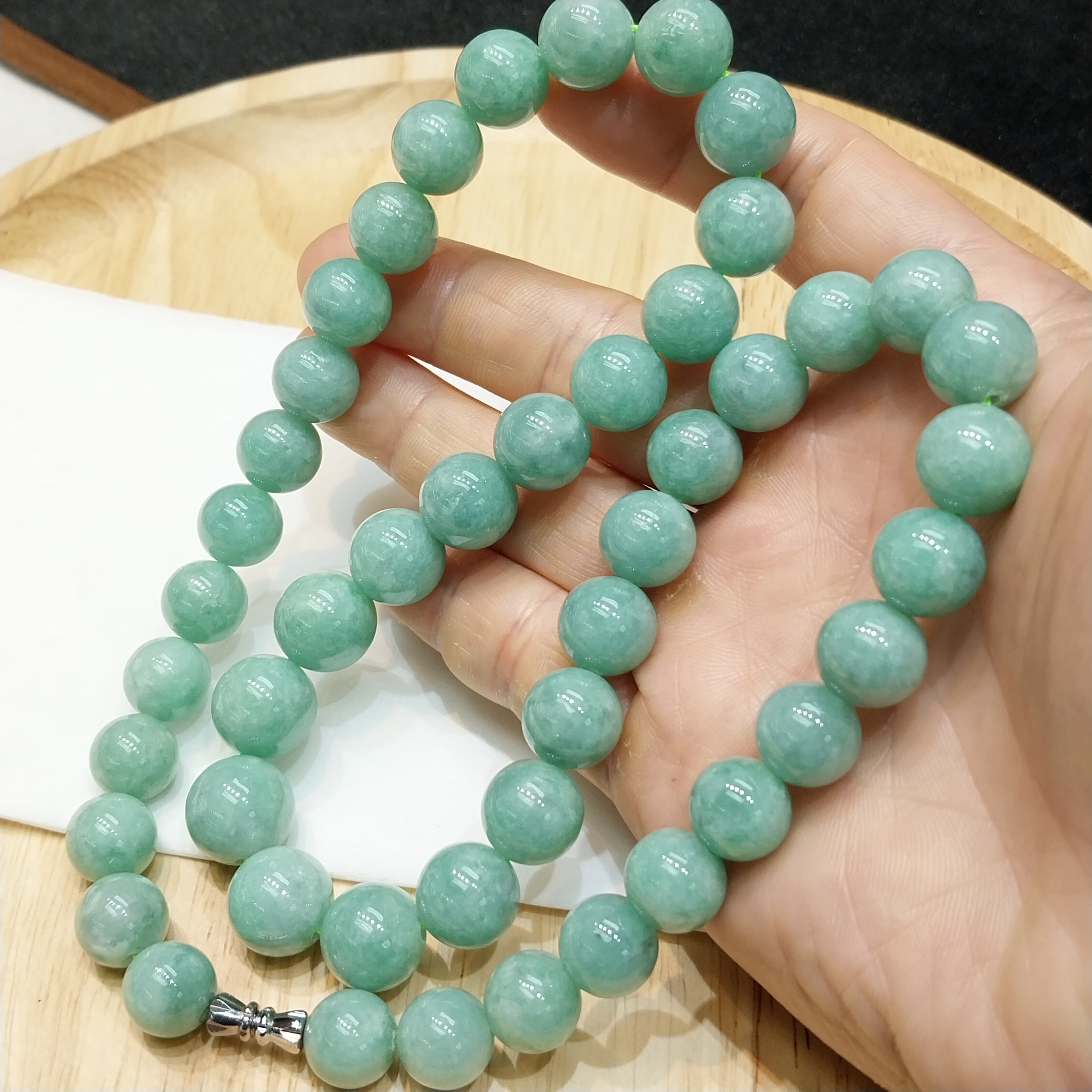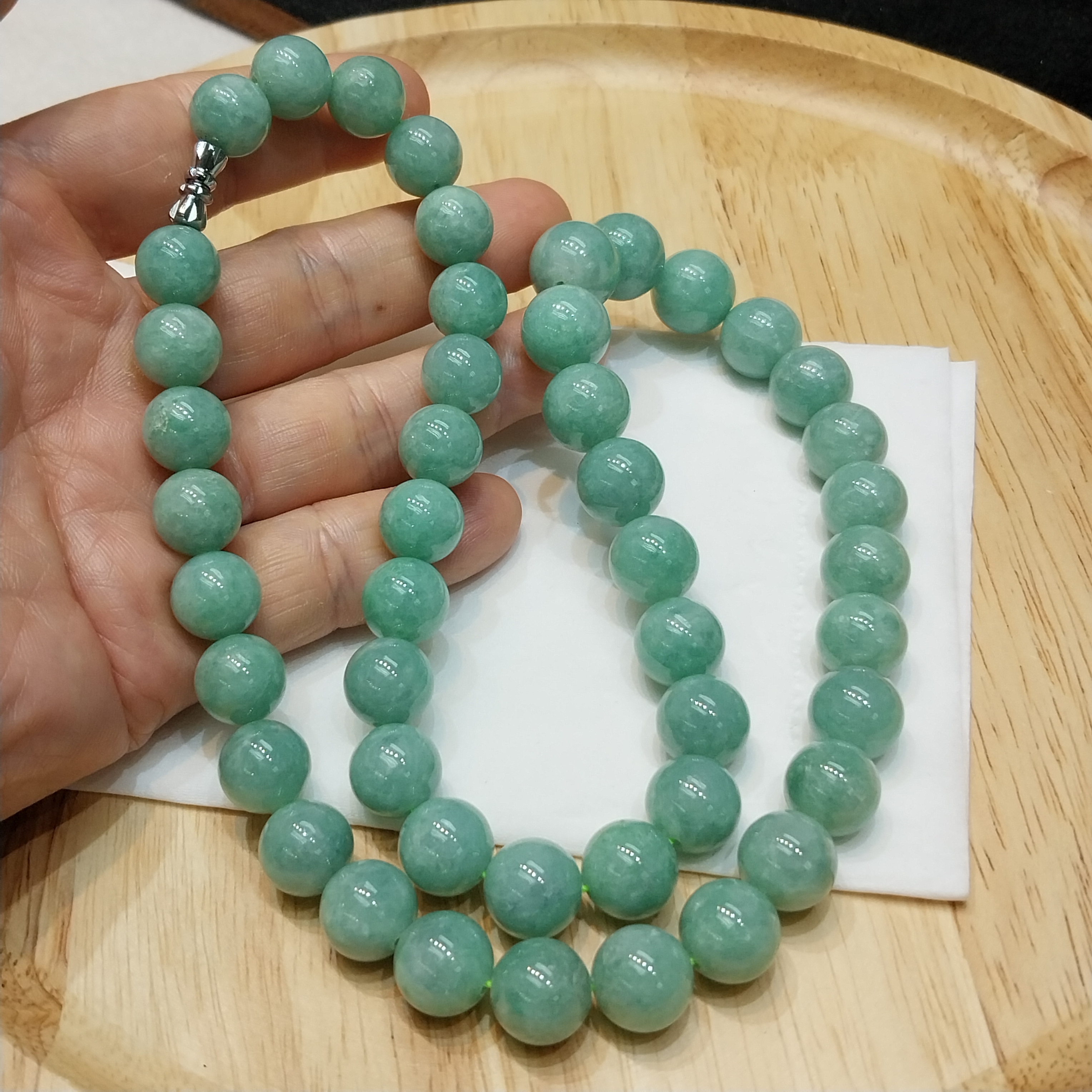 • 細糯滿綠翡翠項鍊 (11.3-13.5mm直徑), 天然翡翠A玉, 緬甸玉, Jade, Jadeite