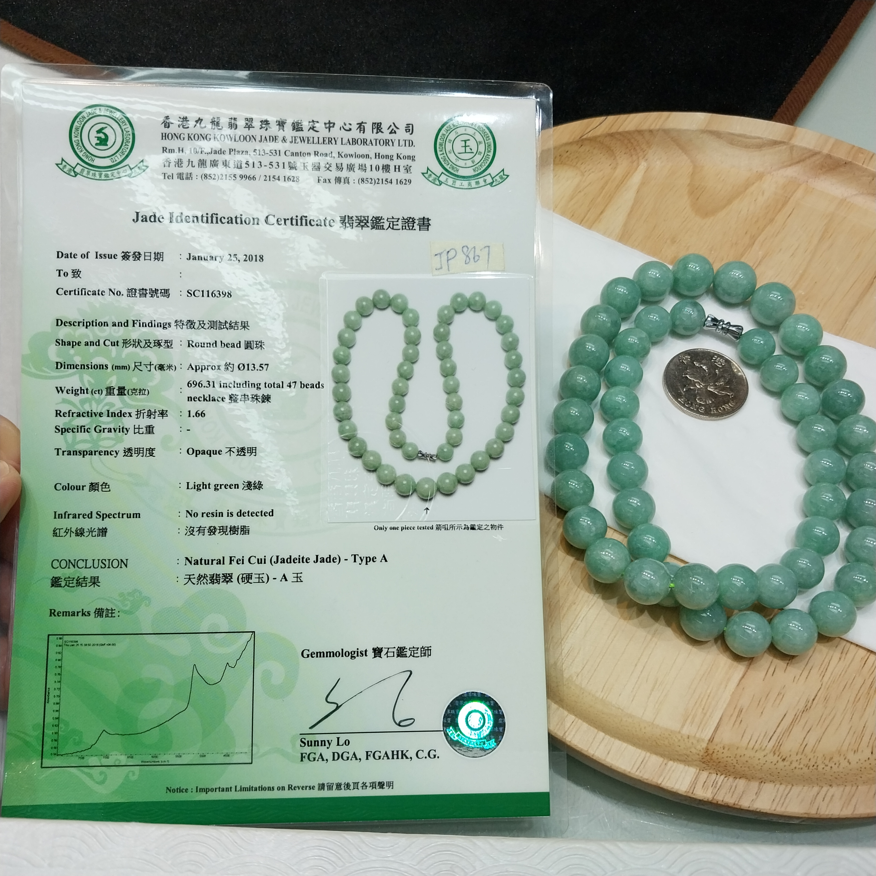 JP867 細糯滿綠翡翠項鍊 (11.3-13.5mm直徑)