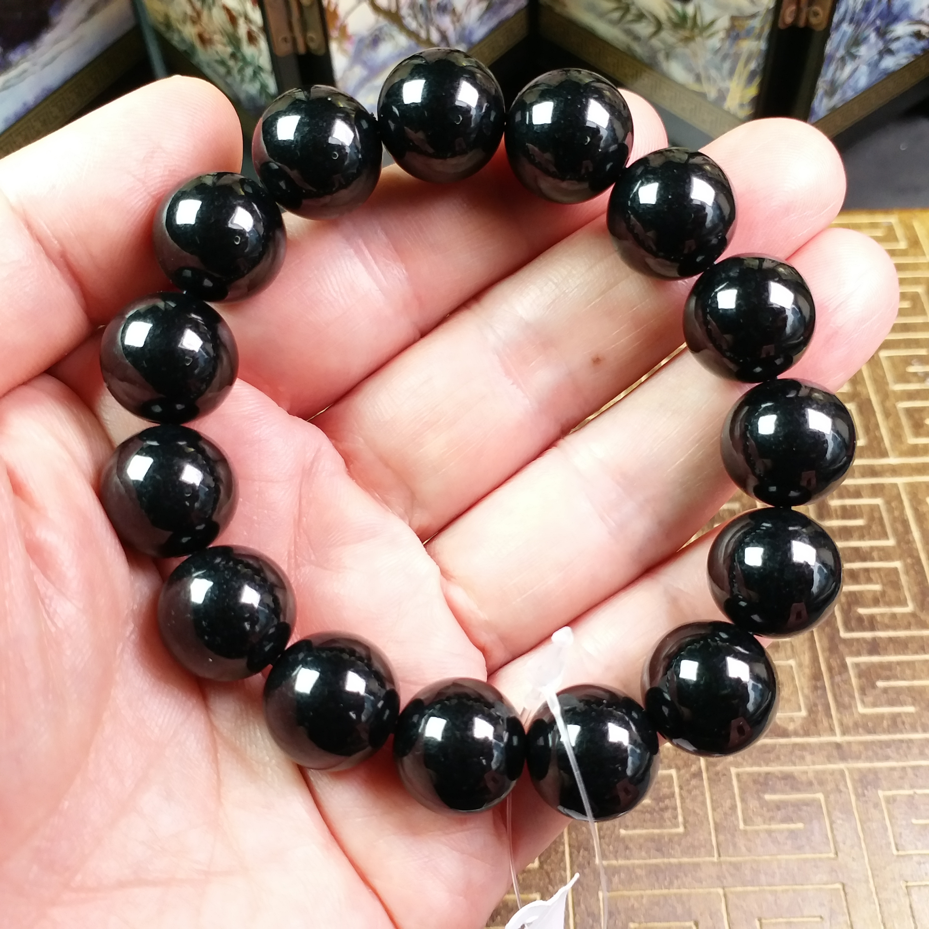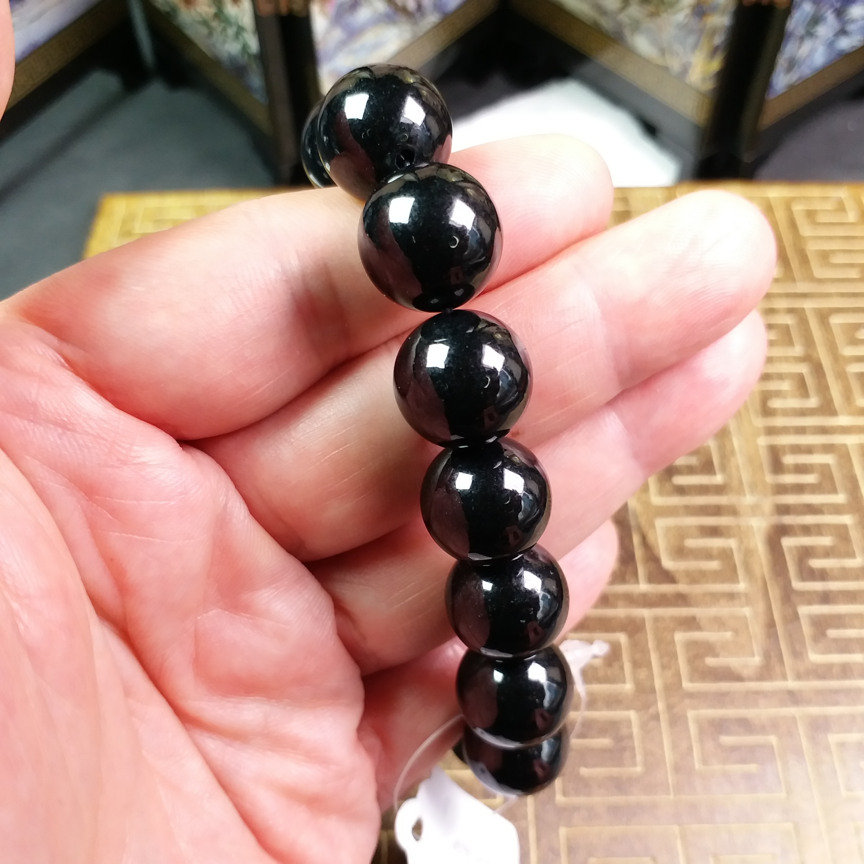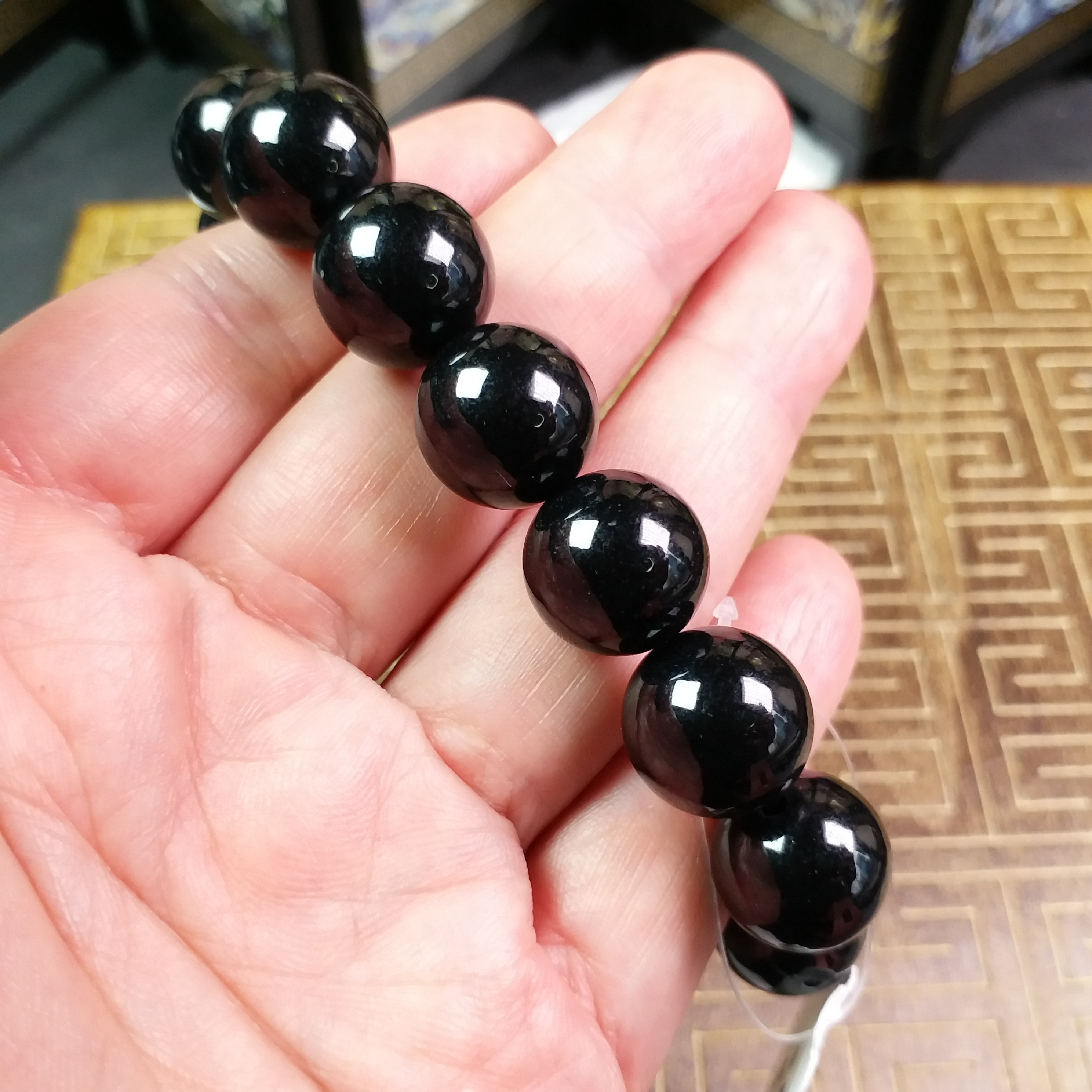 • 墨翠手串 (14mm直徑), 天然翡翠A玉, 緬甸玉, Jade, Jadeite