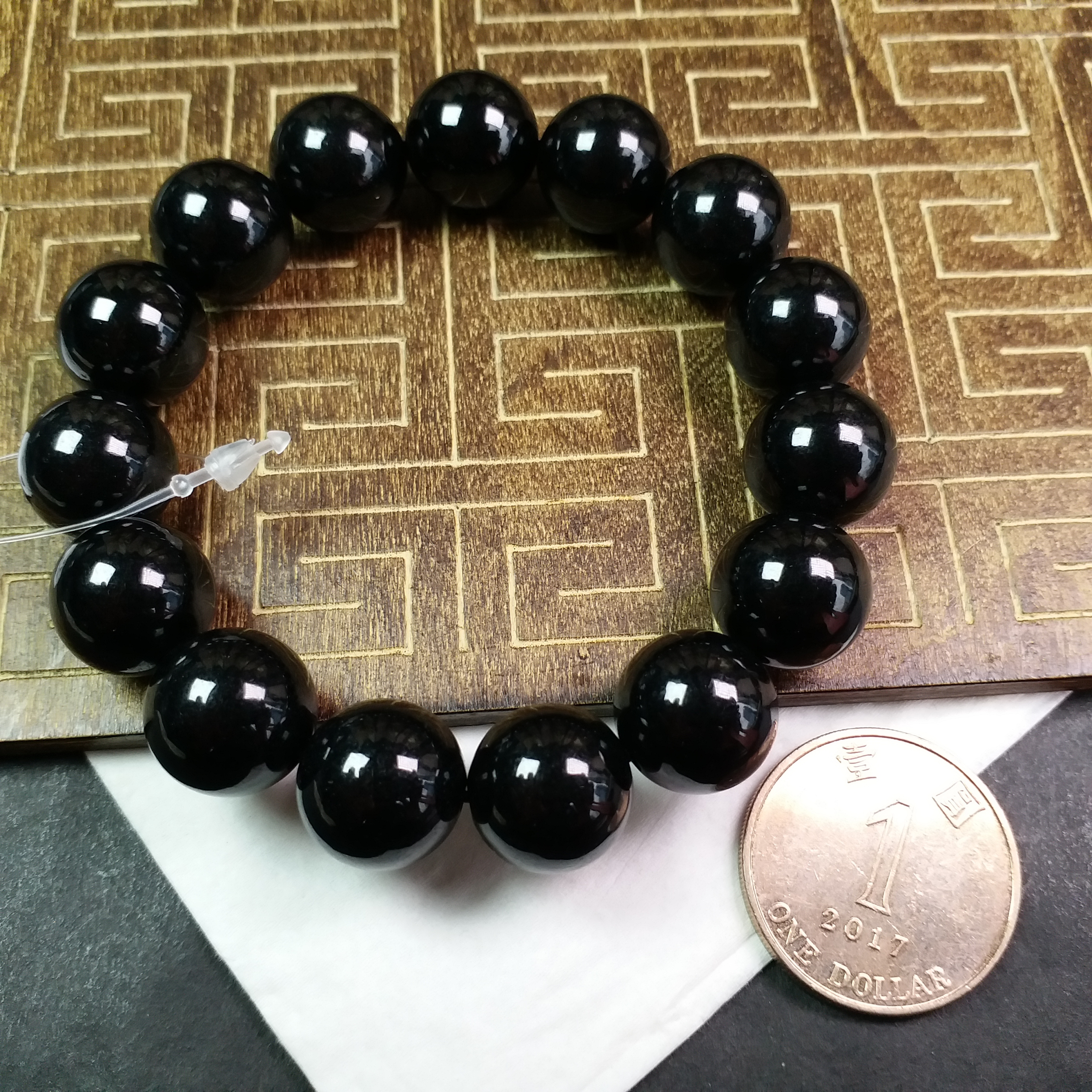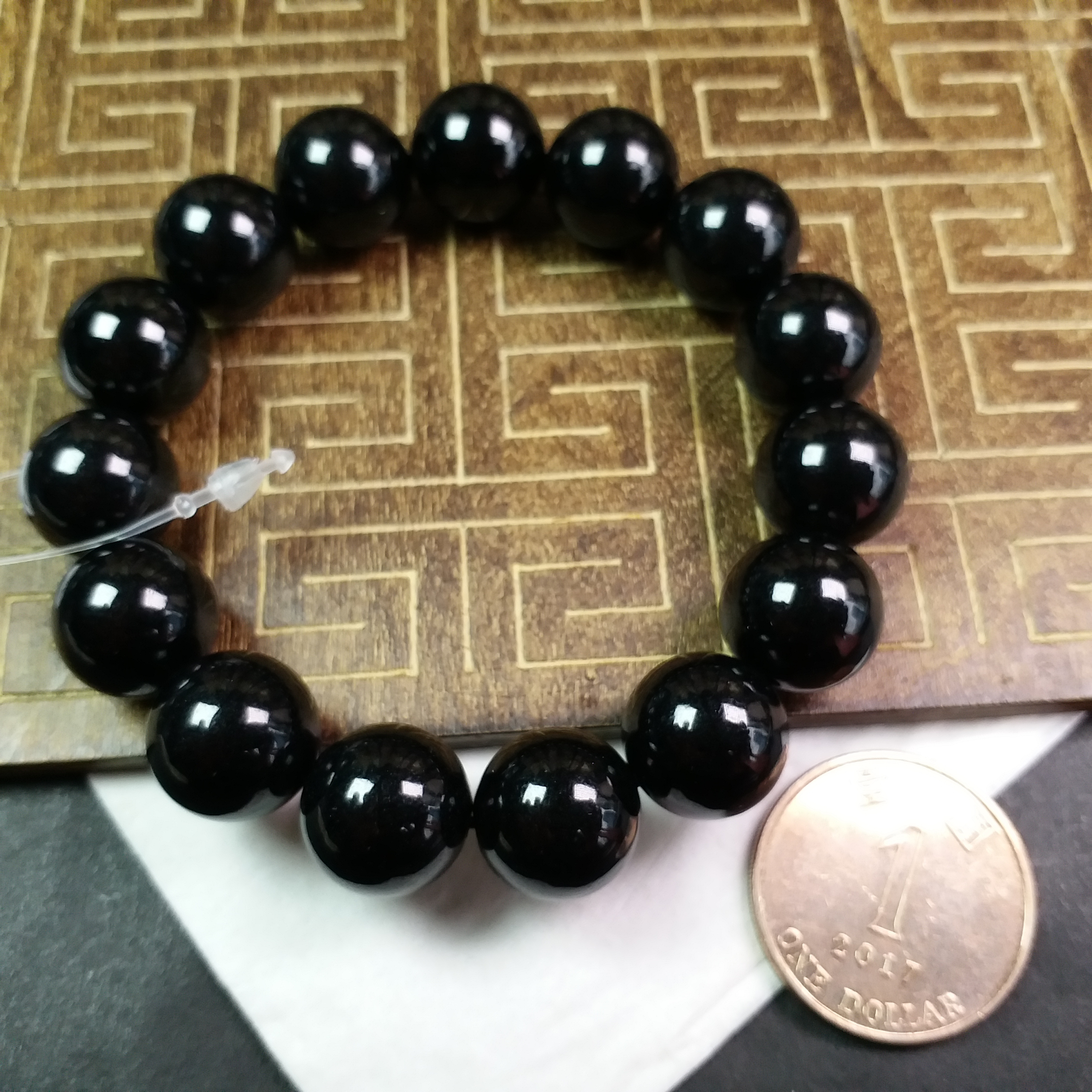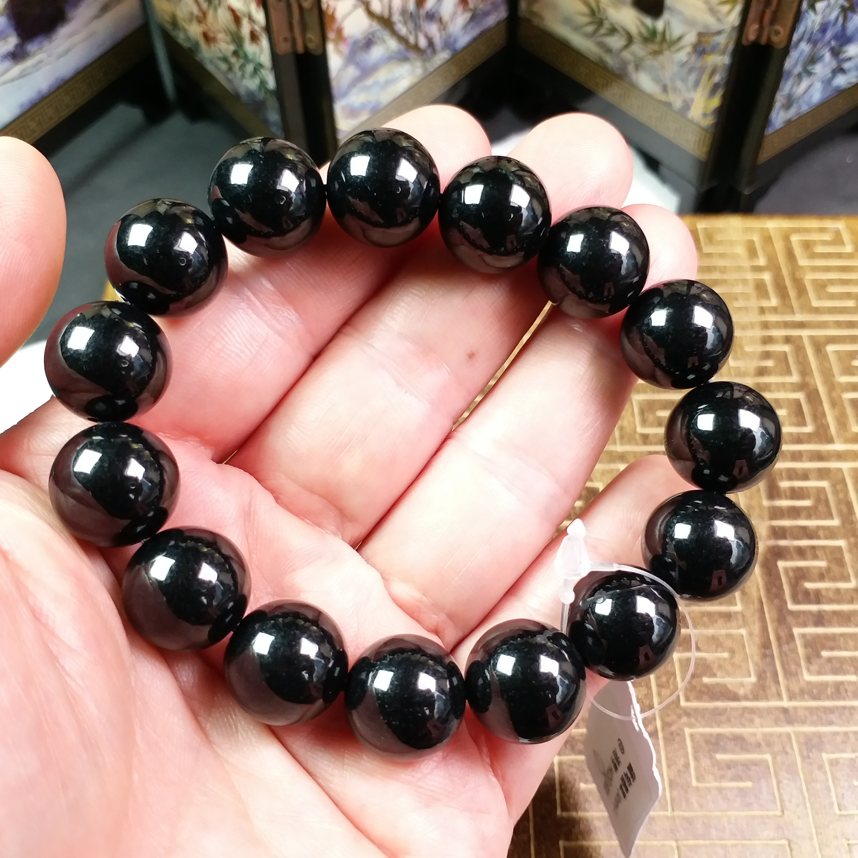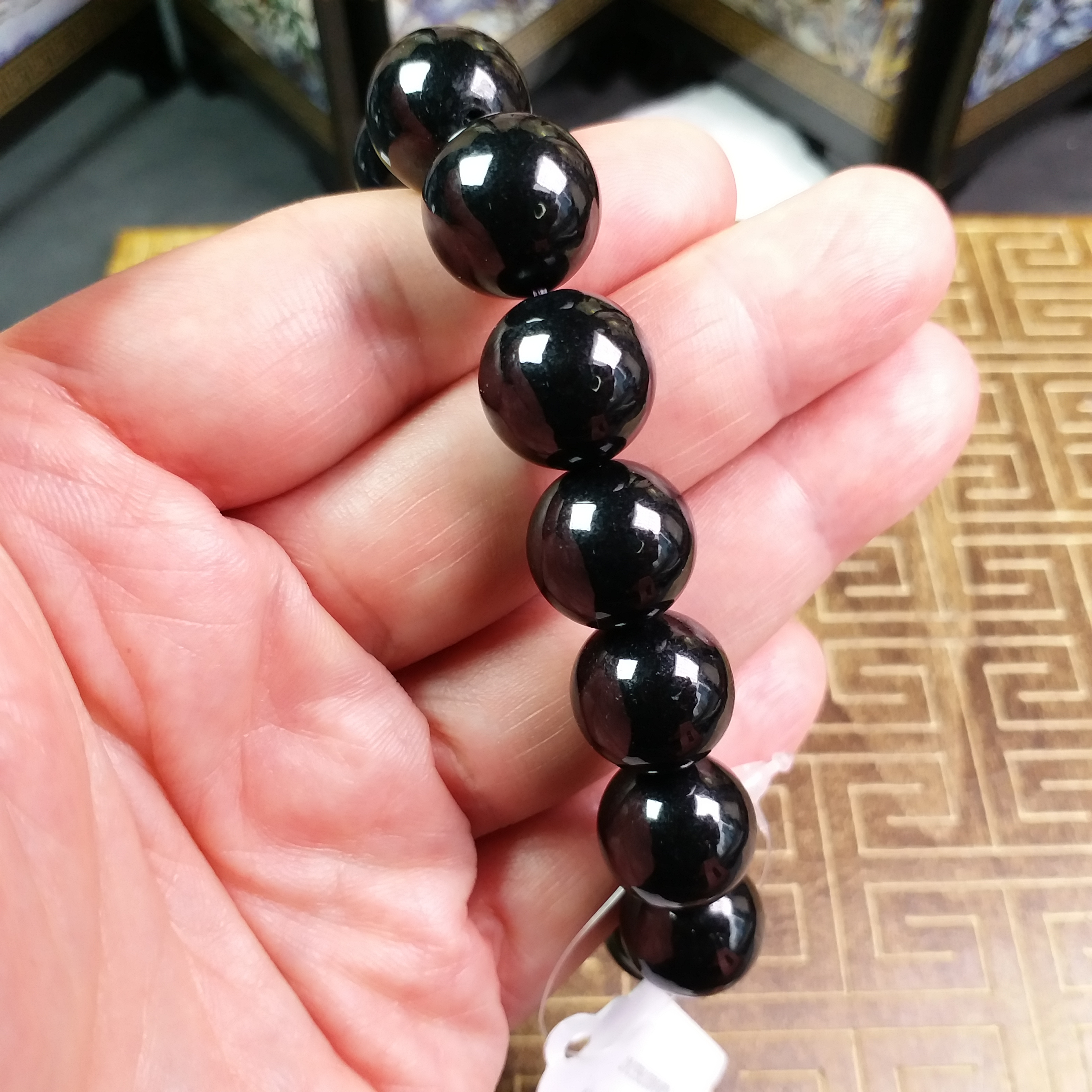 • 墨翠手串 (14mm直徑), 天然翡翠A玉, 緬甸玉, Jade, Jadeite