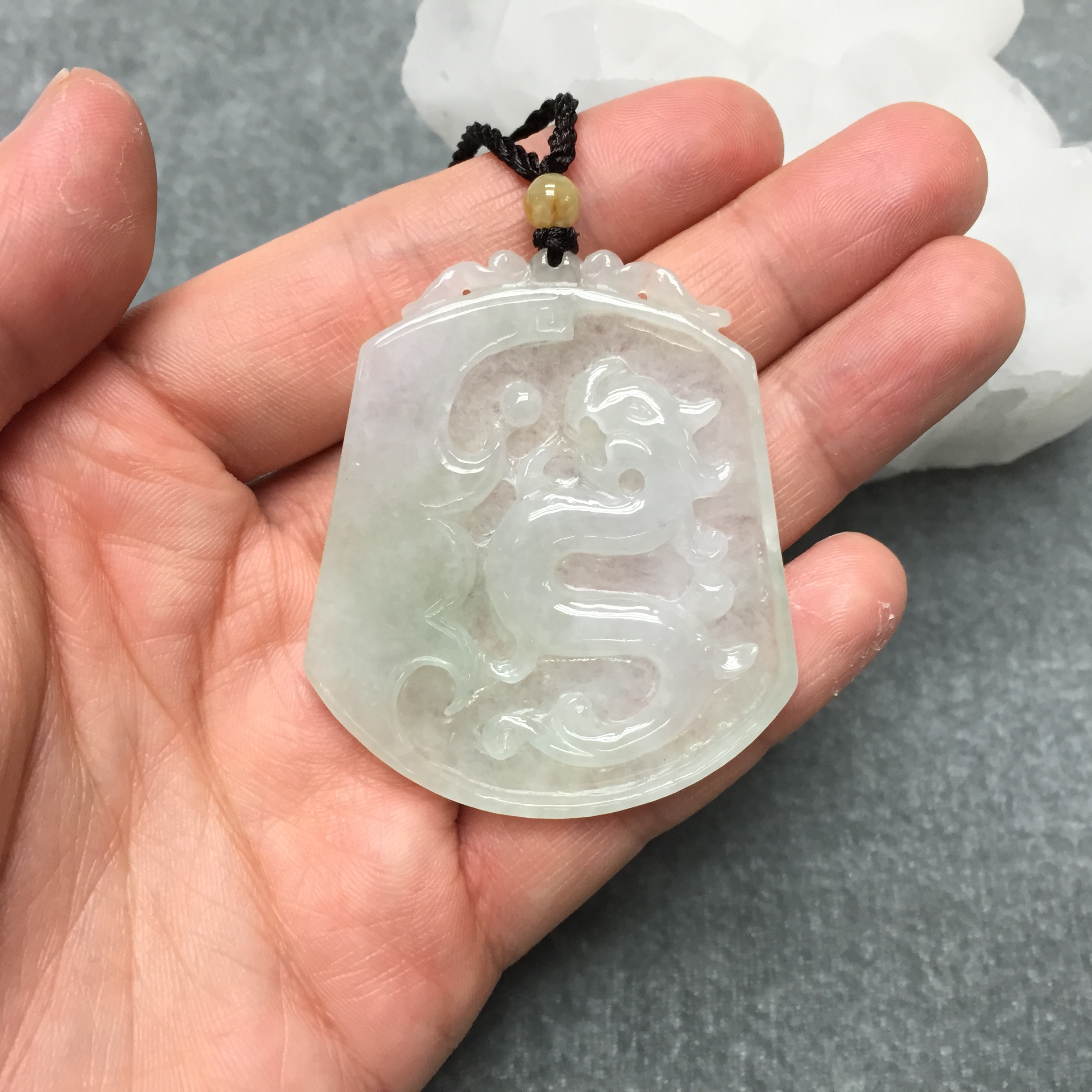 • 冰種雕龍玉吊墜, 天然翡翠A玉, 緬甸玉, Jade, Jadeite