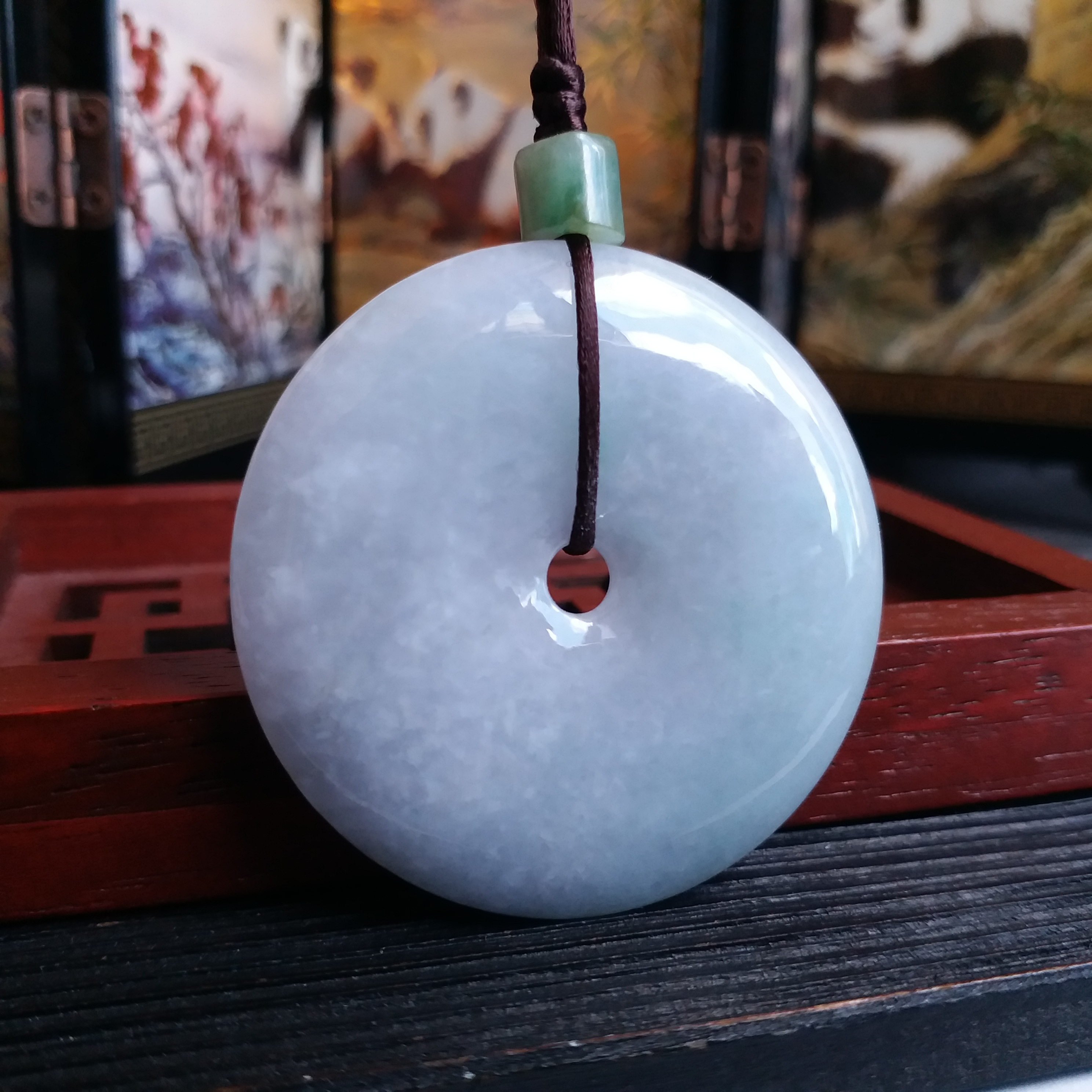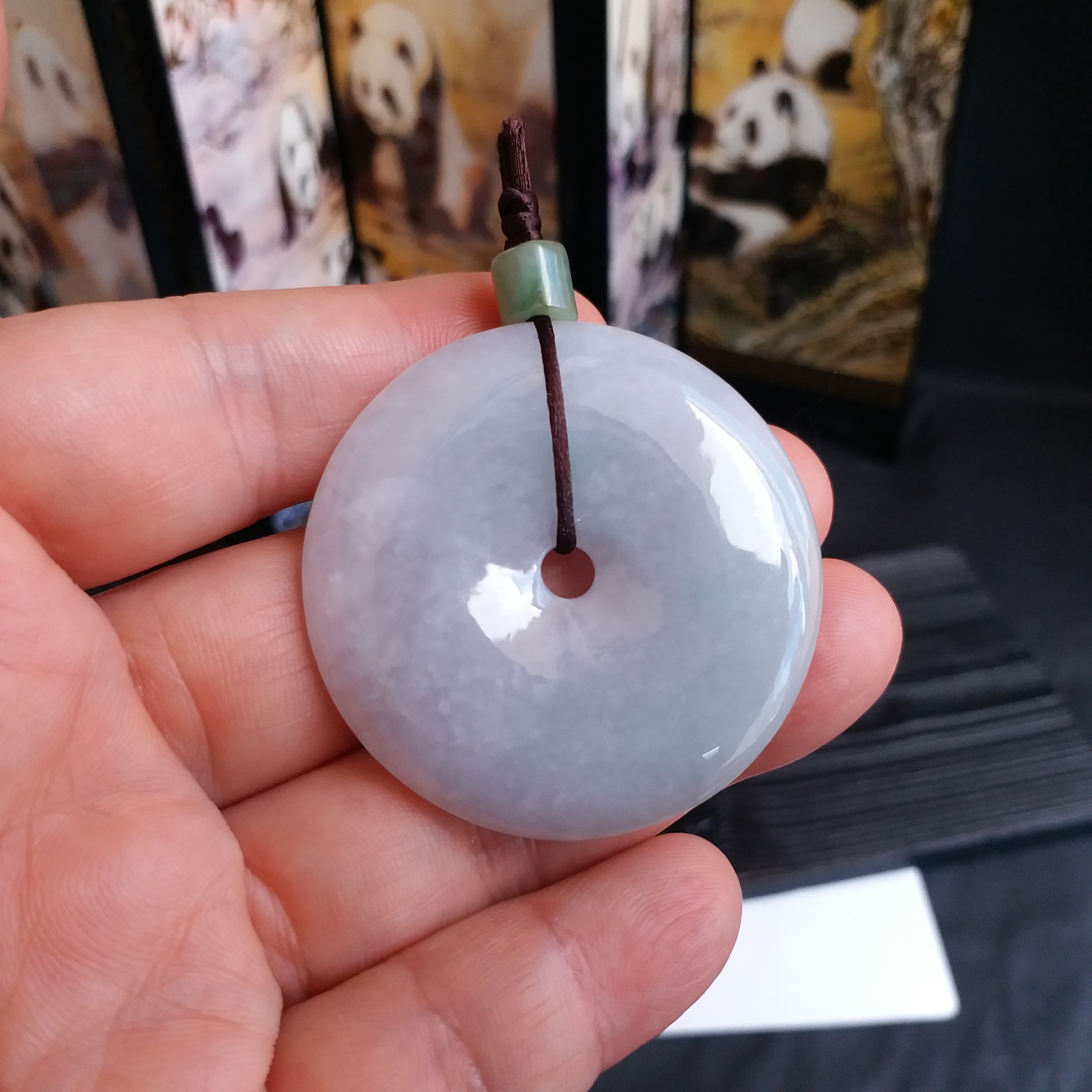 • 冰糯春彩平安扣 (45mm直徑), 天然翡翠A玉, 緬甸玉, Jade, Jadeite