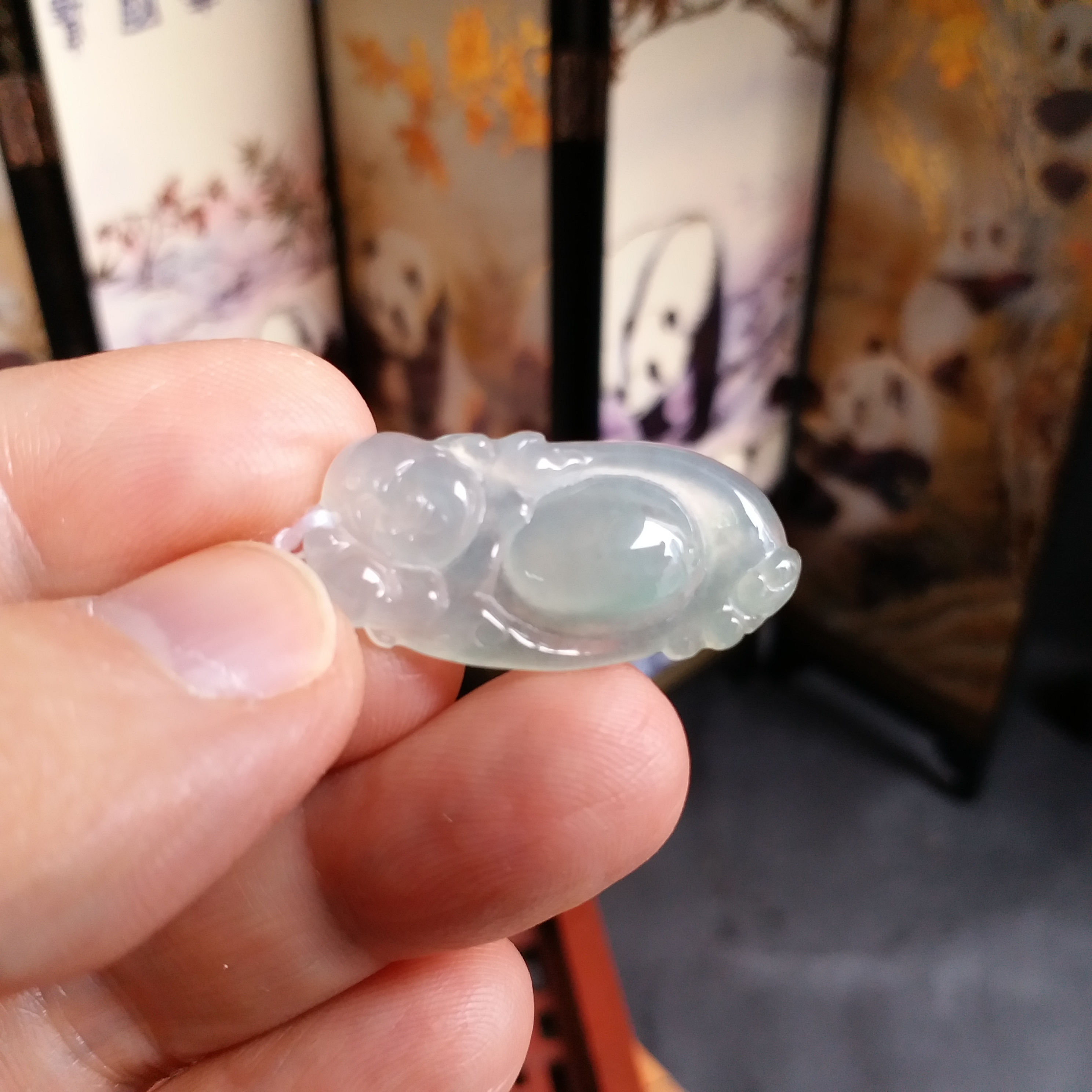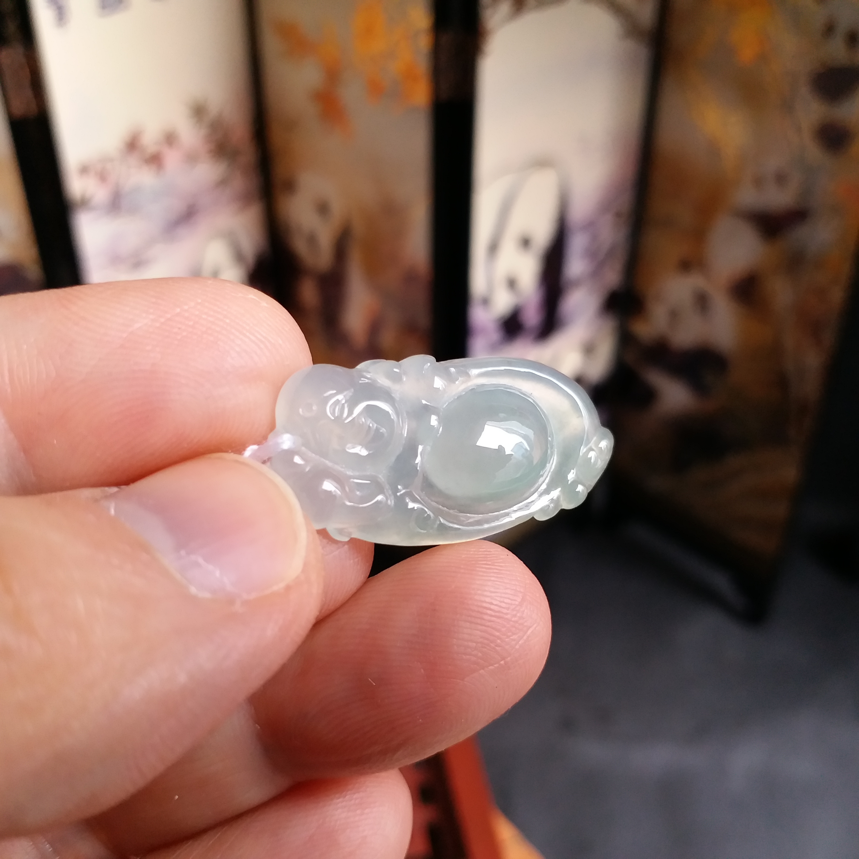 • 翡翠冰種逍遙笑佛, 天然翡翠A玉, 緬甸玉, Jade, Jadeite