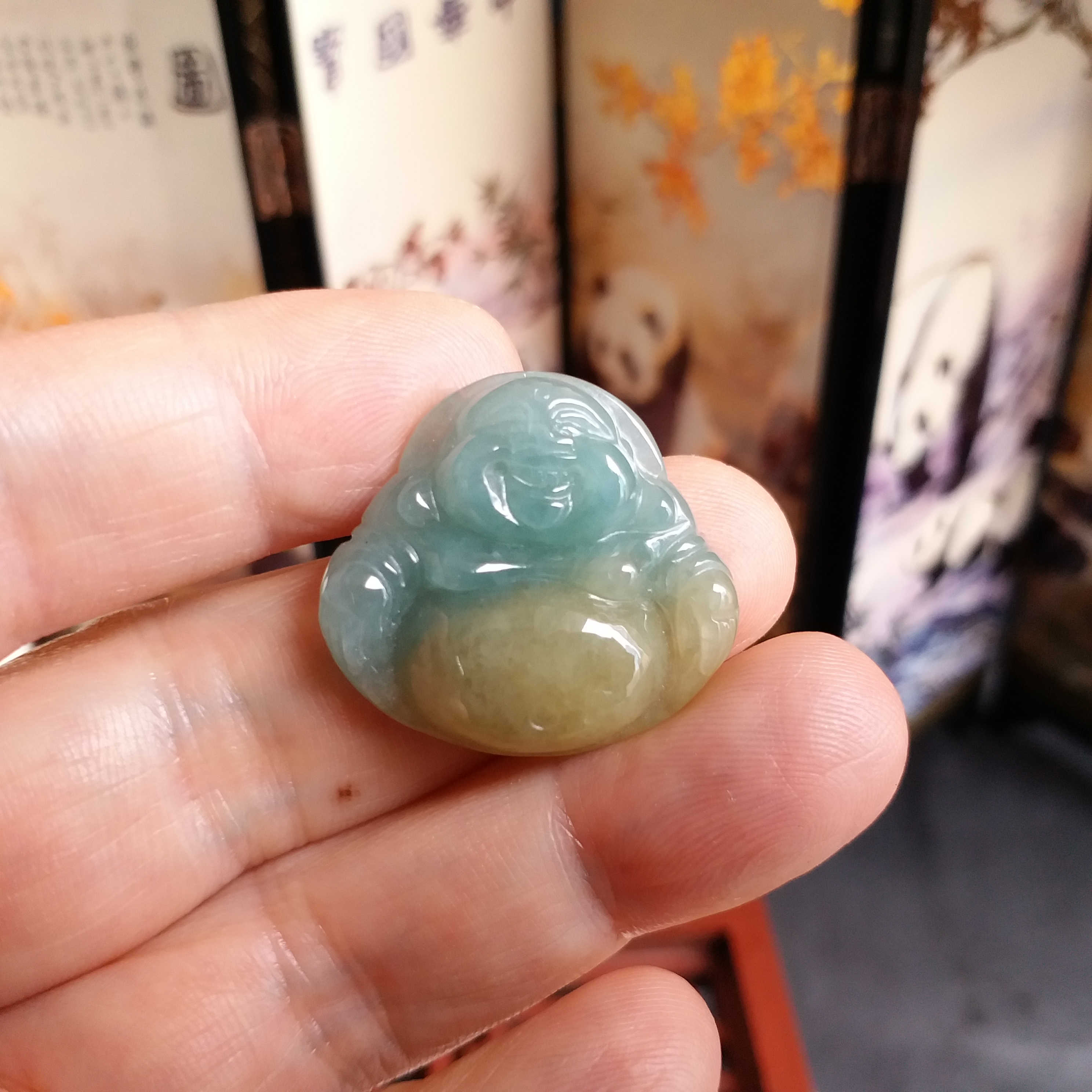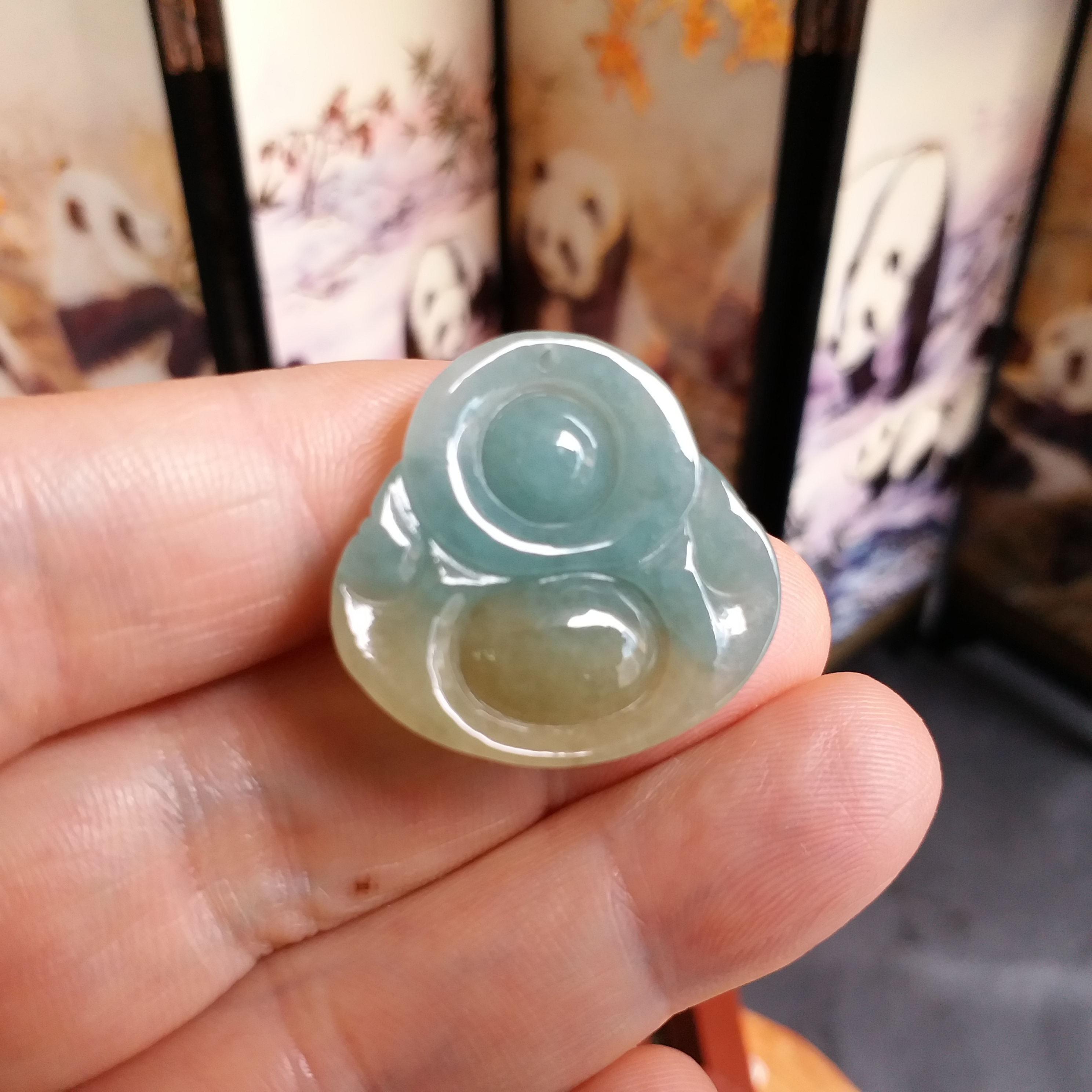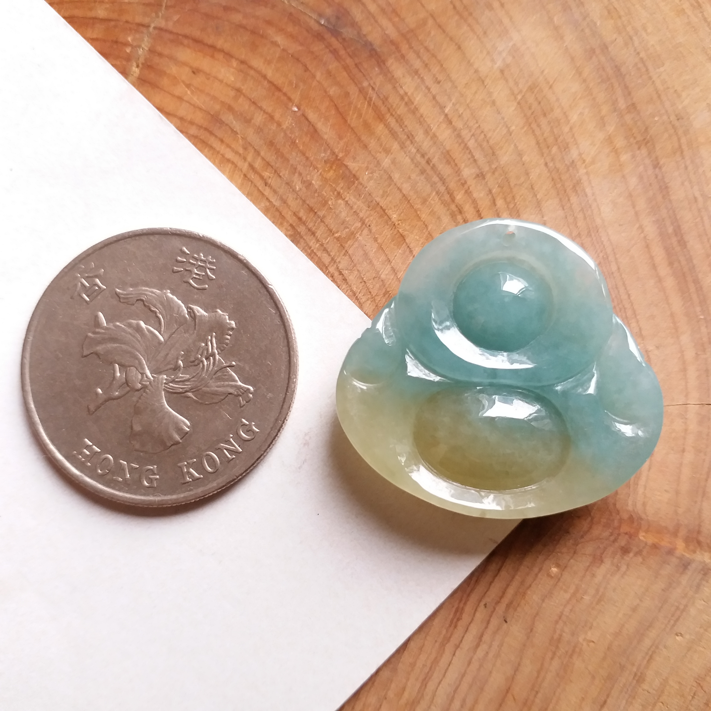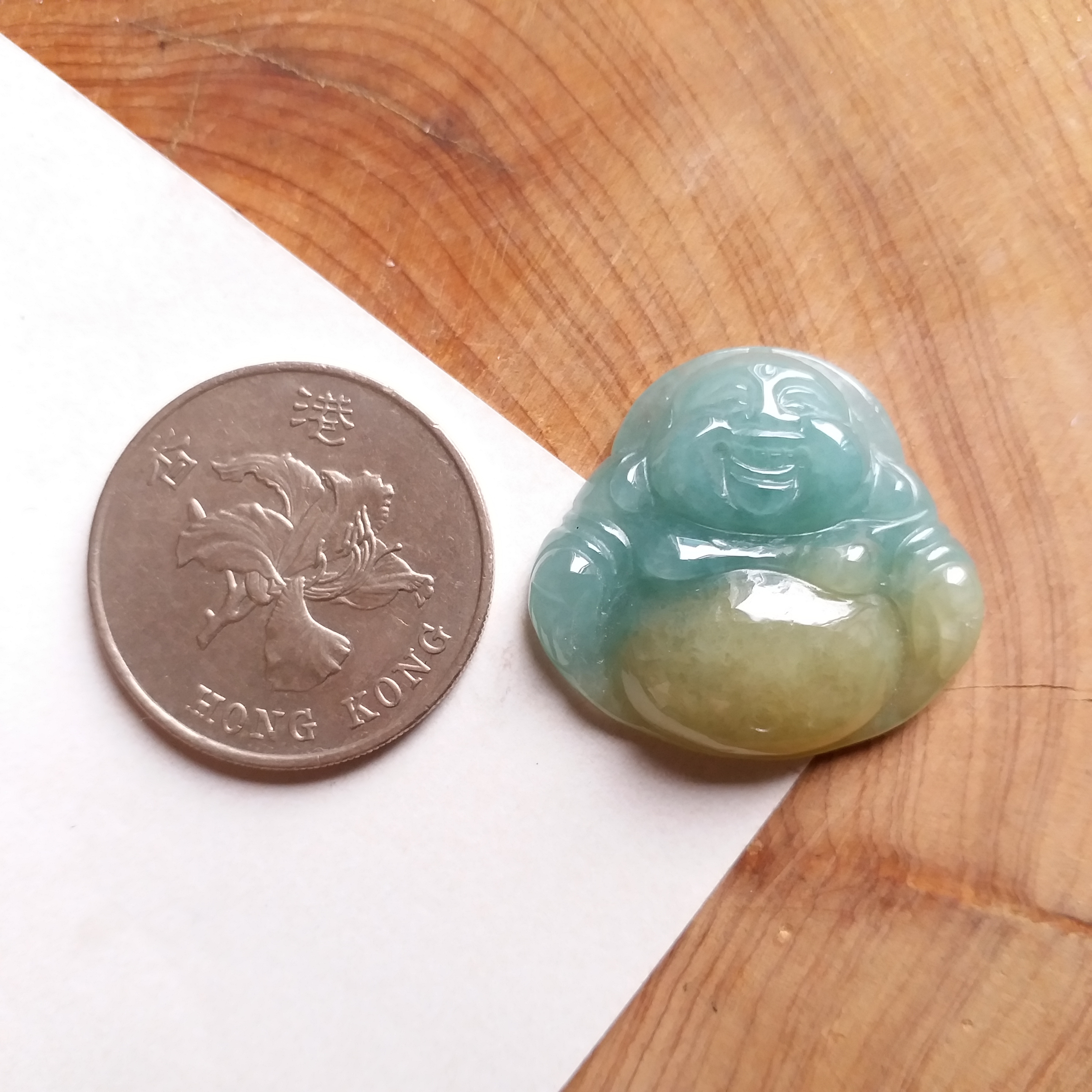 • 翡翠金綠雙色佛吊墜, 天然翡翠A玉, 緬甸玉, Jade, Jadeite