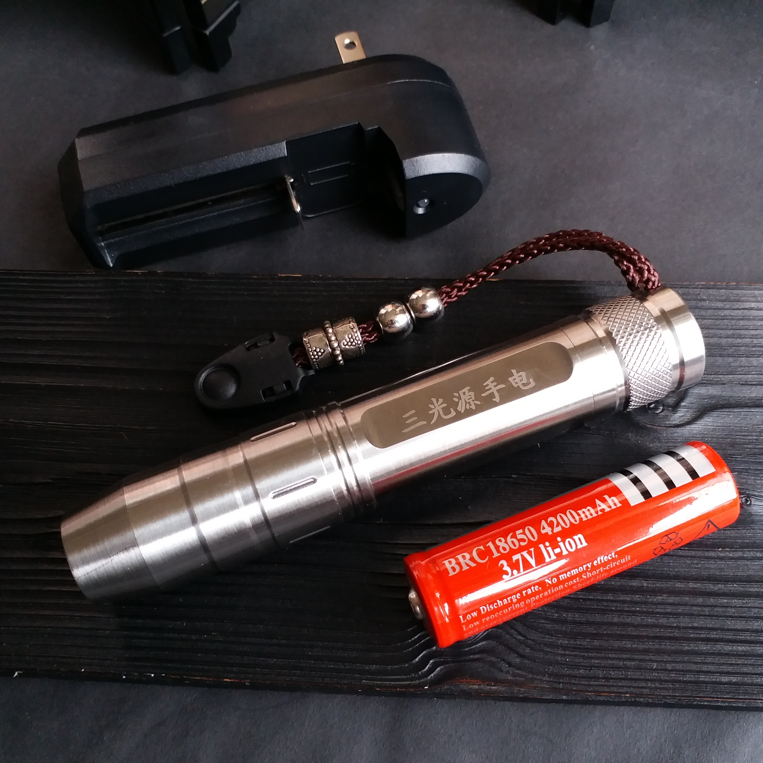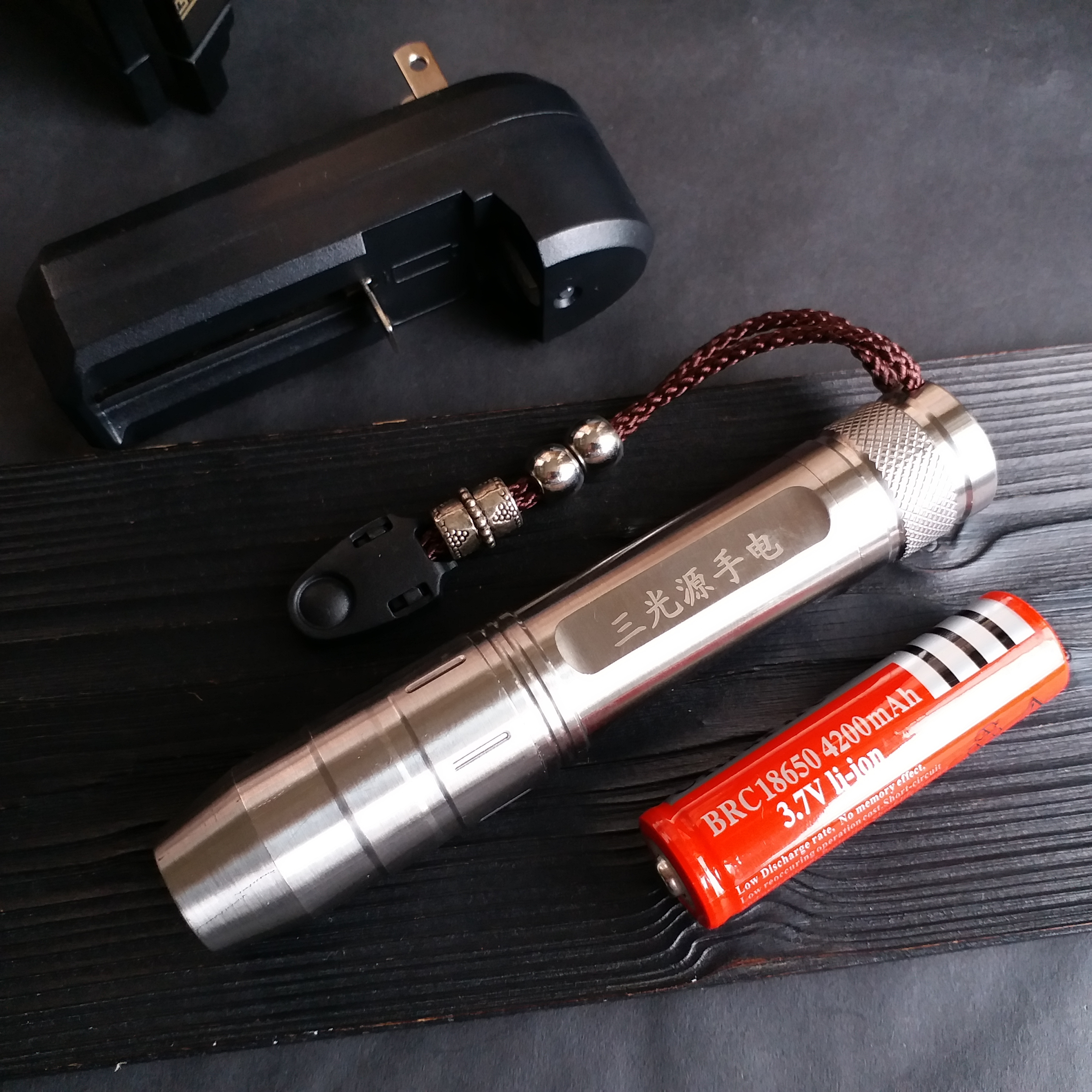 一支電筒,三種光 (白光、黃光、和分辨翡翠真假專用的365nm紫外光)